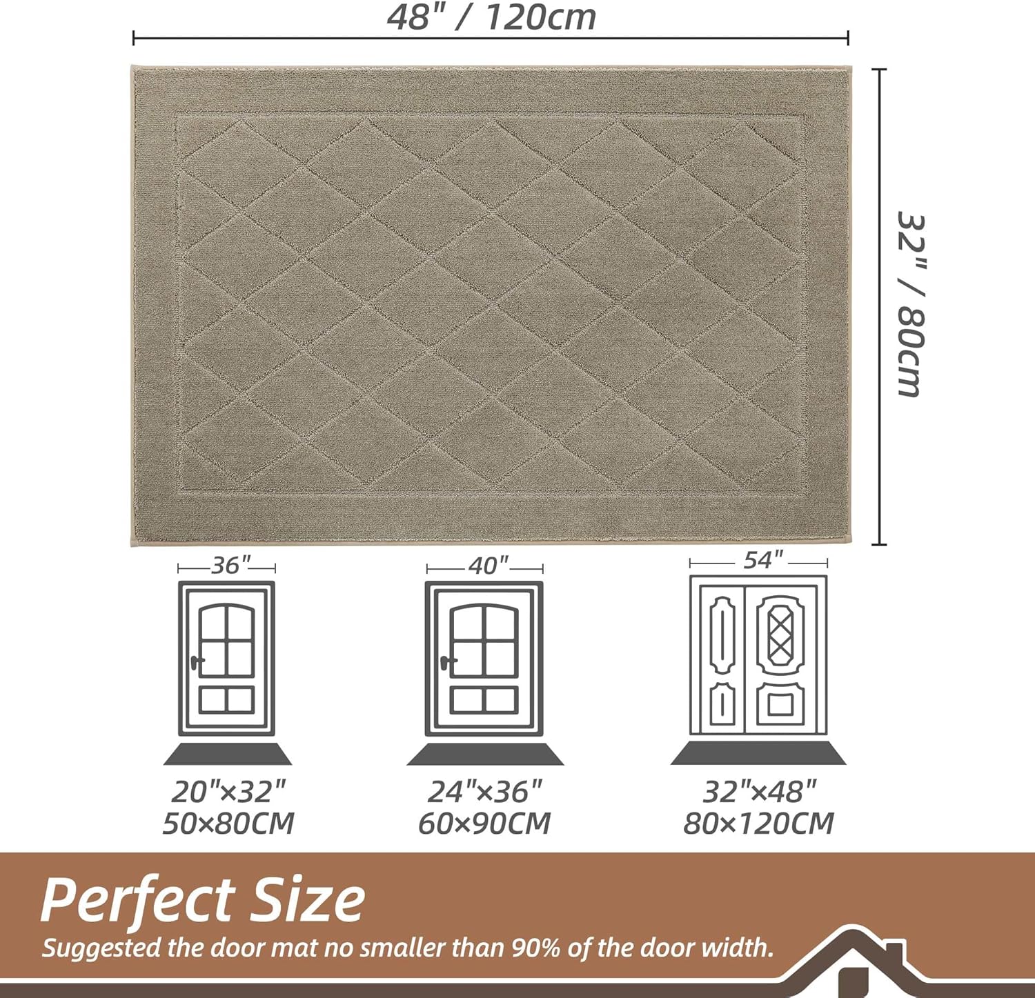 BEQHAUSE Dirt Trapper Door Mat 32" x 48", Doormat Non-Slip Entryway Rugs Washable, Dog Door Mat Stain Resistant and Absorbent Welcome Floor Mat for Front Back Door, Muddy Wet Shoes & Paws, Beige
