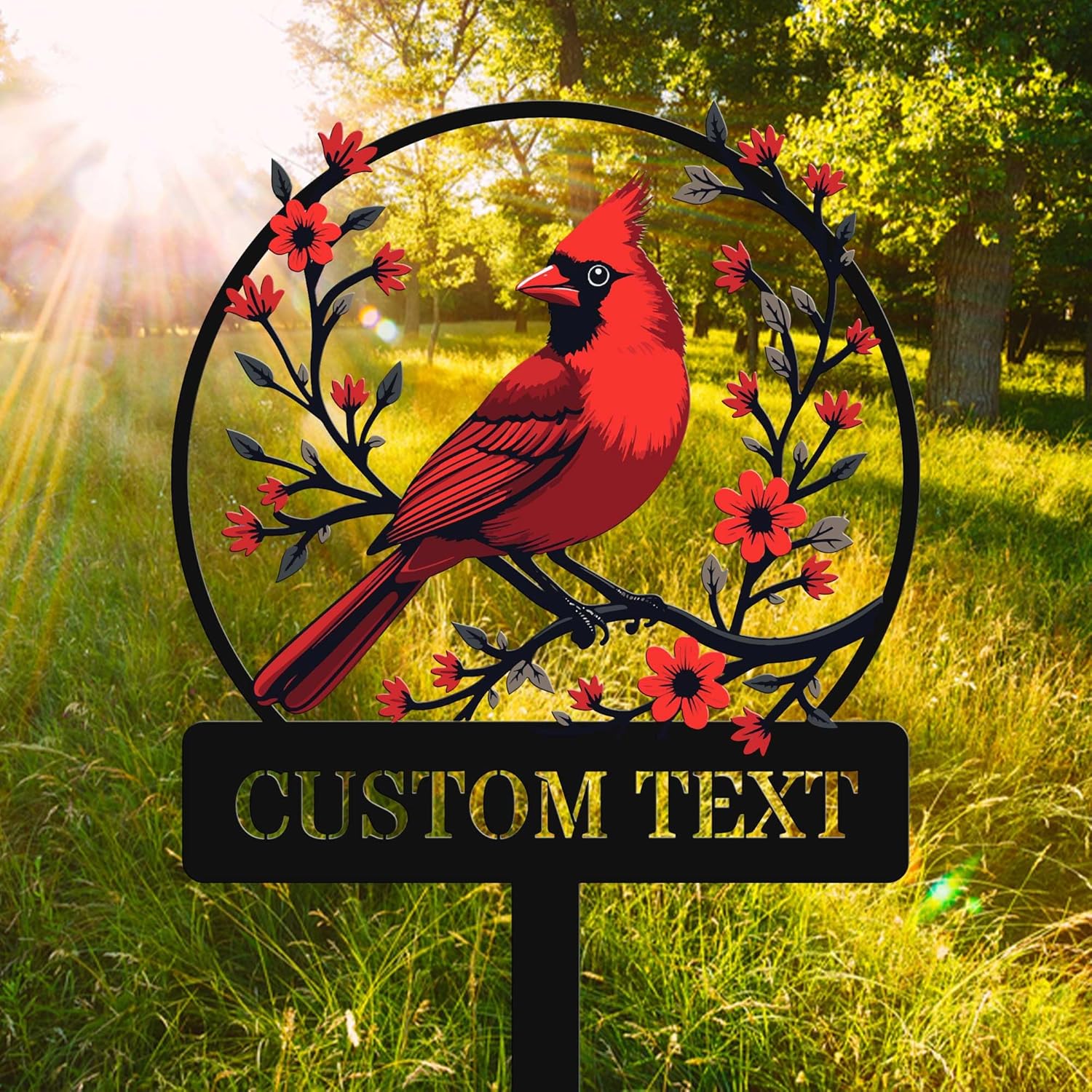 Personalized Name Garden Cardinal Metal Signs with Stake, Custom Family Name Yard Decor for Outdoor Outside, Cardinal Lawn Patio Stake Gardening Enthusiasts Grandmothers Gift