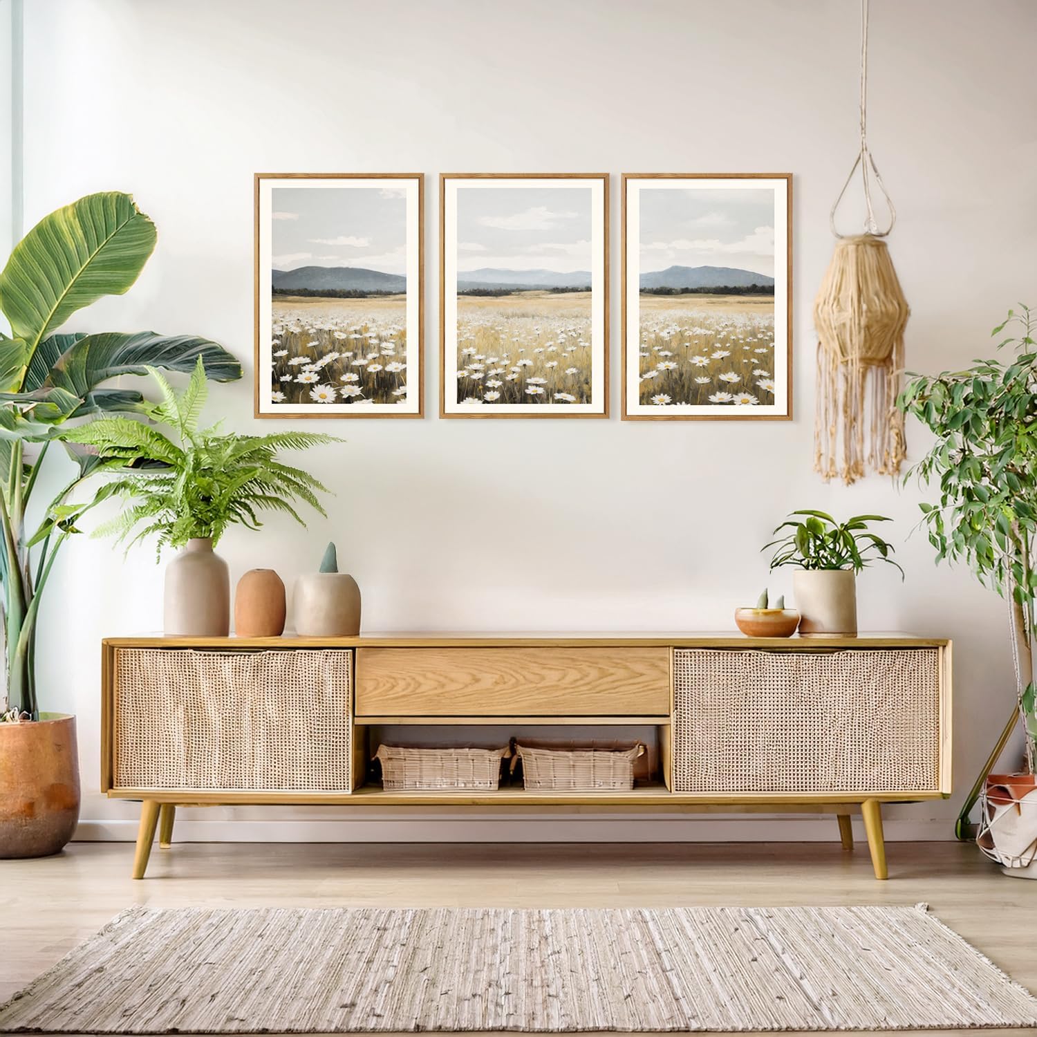 - ➤Charming Daisy Framed Wall Art: This floral wall picture features delightful daisy motifs in a charming watercolor style, creating a fresh and inviting atmosphere. Each piece measures 16x24 inches (40x60 cm), and the set includes three canvases for a stunning visual impact that enhances any modern or rustic home decor.