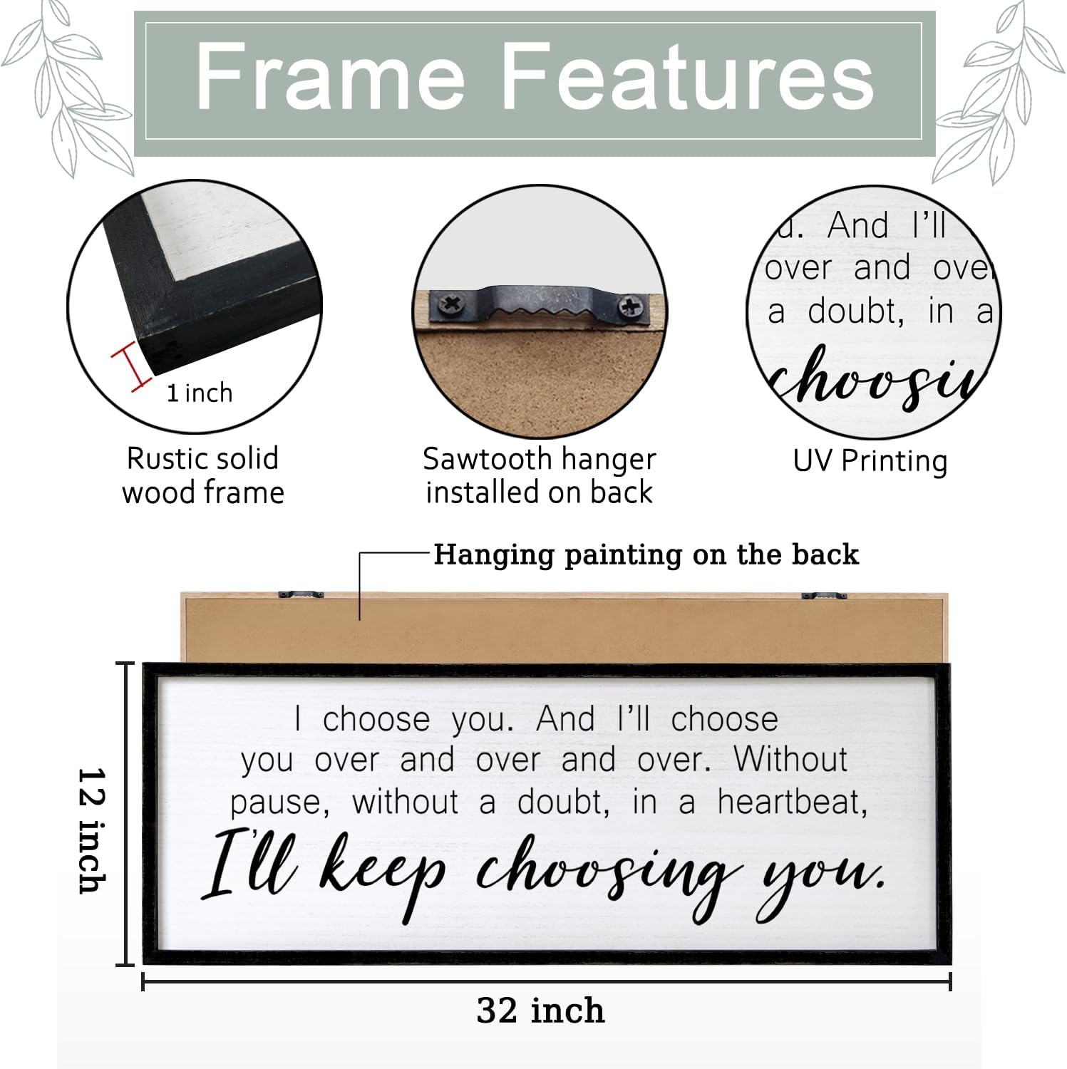 I Choose You Sign Wall Decor Art Above Bed 32X12 Inch I Love You Romantic Wood Framed for Master Bedroom Over Bed I'll Keep Choosing You Sign (Black)