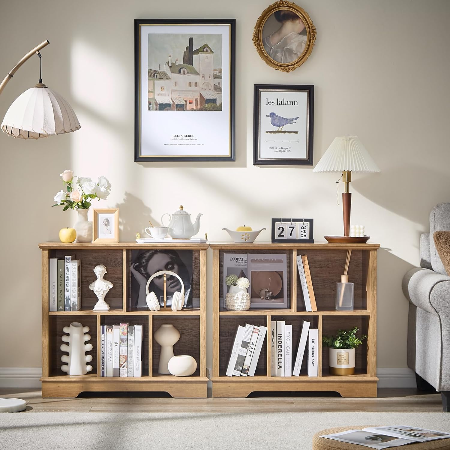 Farmhouse 5 Cube Bookshelf, Storage Organizer Bookcase, Kids Toy Storage Cabinet, Small Bookshelves Storage Organizer Shelf, Wood Display Cabinet Book Shelves for Bedroom,Living Room,Natural Oak