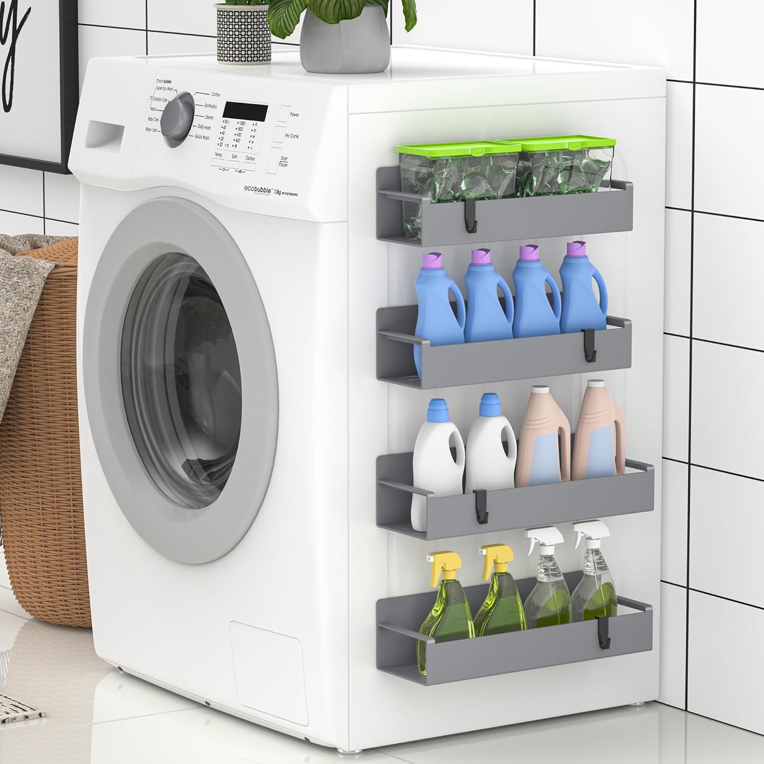 4 Pack Magnetic Spice Rack Organizer for Refrigerator and Oven, Dark Grey Fridge Organizers and Storage for Kitchen