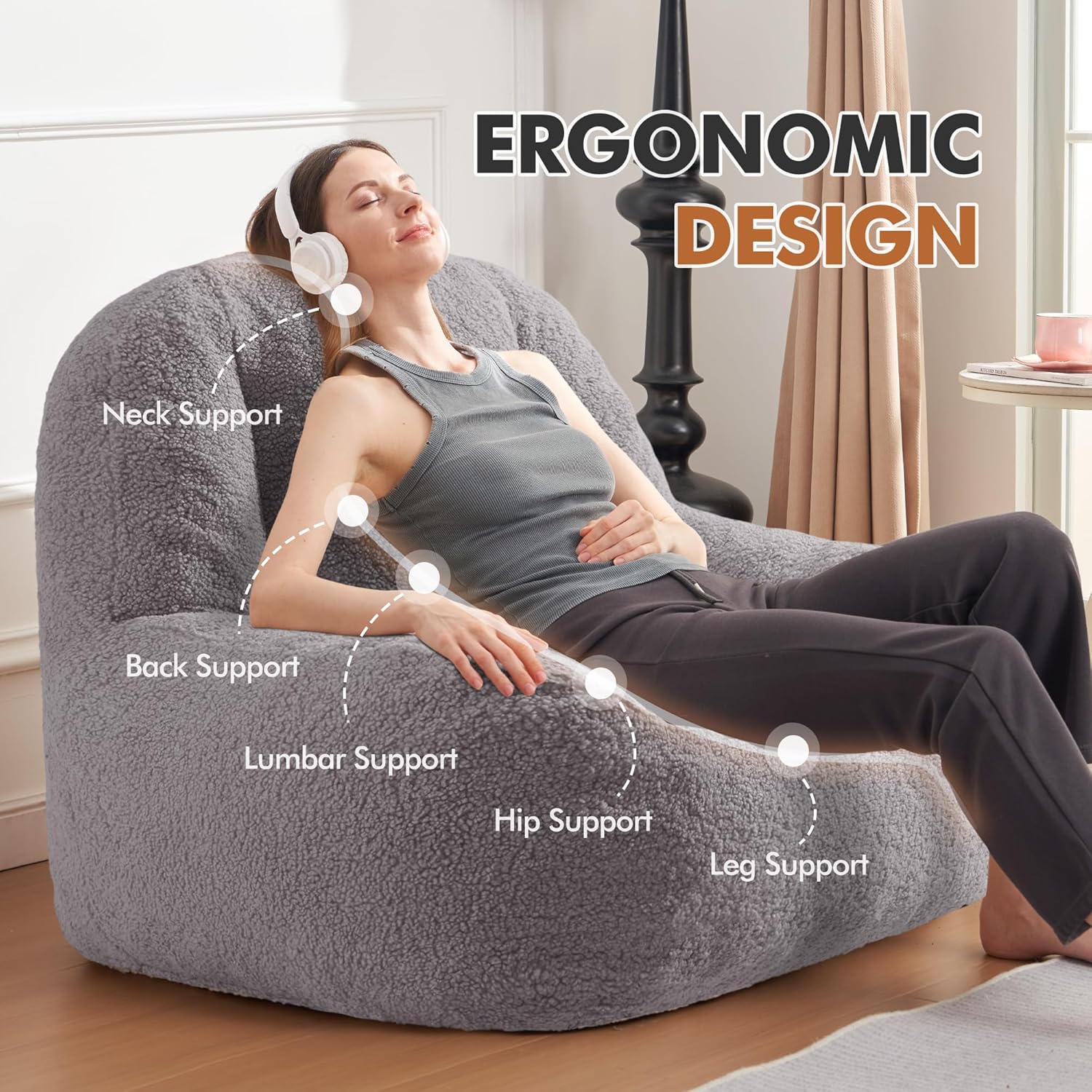 • Soft and Skin-Friendly Fabric: The soft faux sherpa teddy fabric provides a soft and skin-friendly texture, offering a warm ,fluffy and cozy feeling, especially during chilly days, creating a comforting embrace. The bean bag sofa combines aesthetics, comfort, and durability, providing you with the excellent seating experience to enjoy your time.