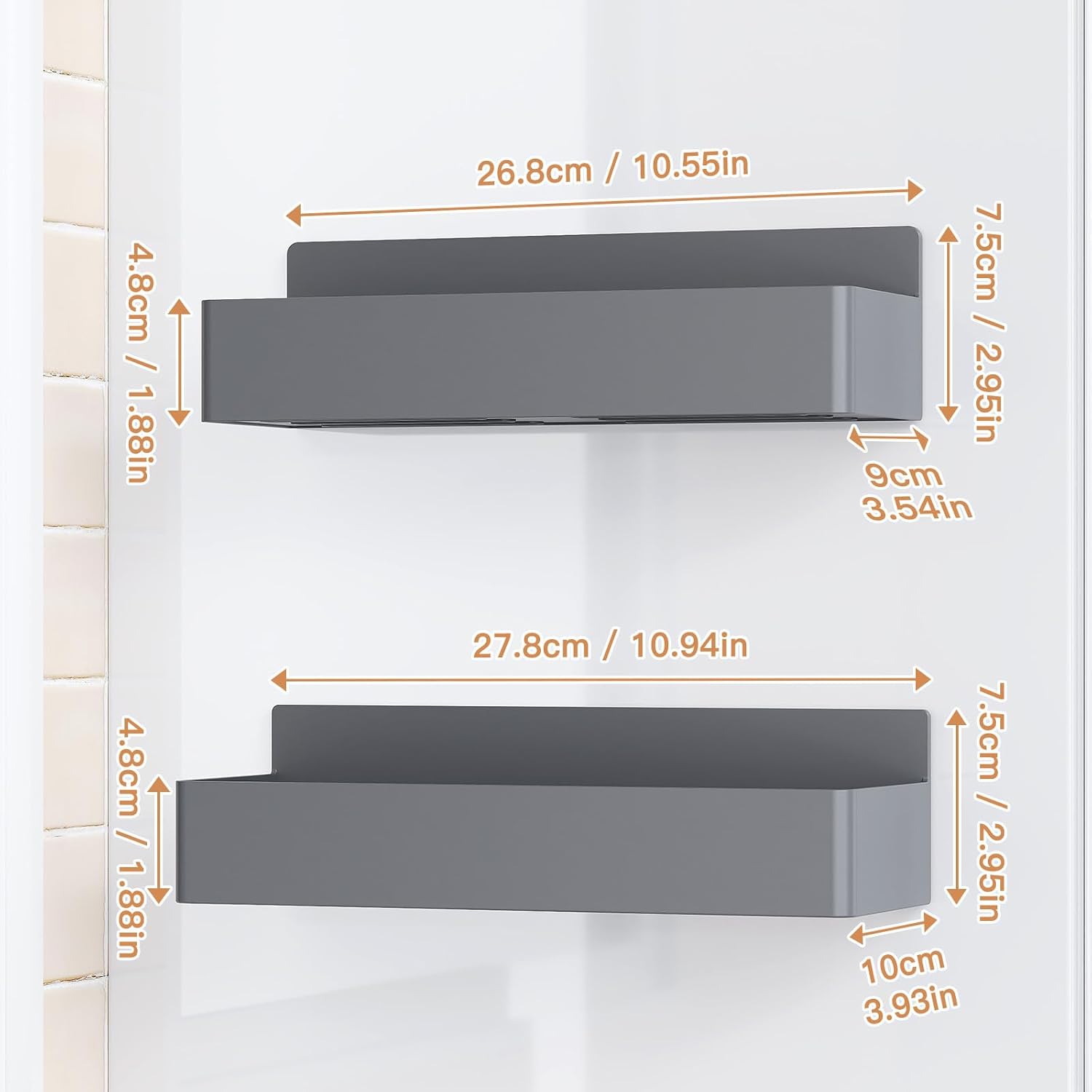 Magnetic Spice Rack for Refrigerator, Kitchen Organizer and Storage Shelf, Grey(2 Pack)