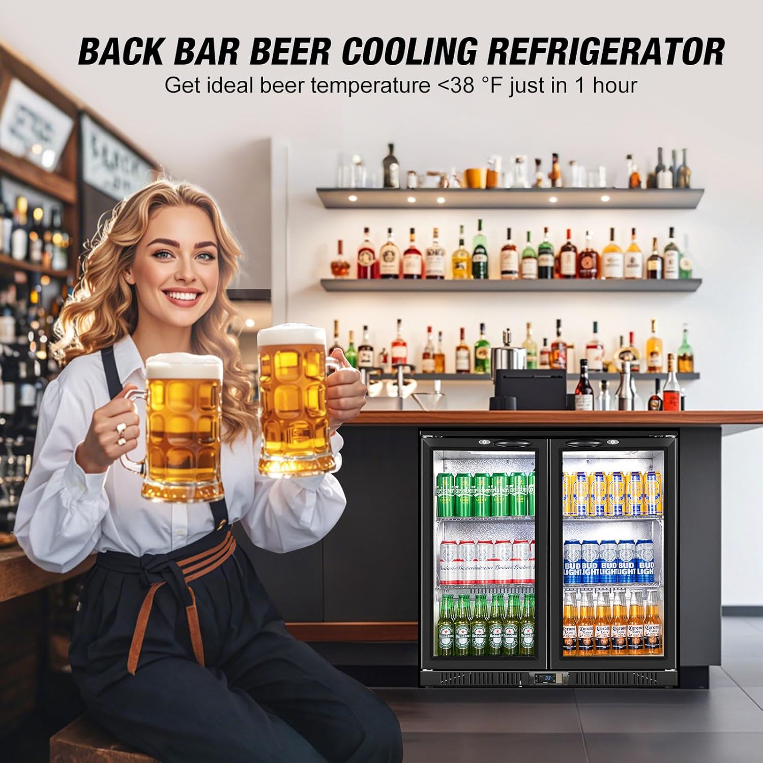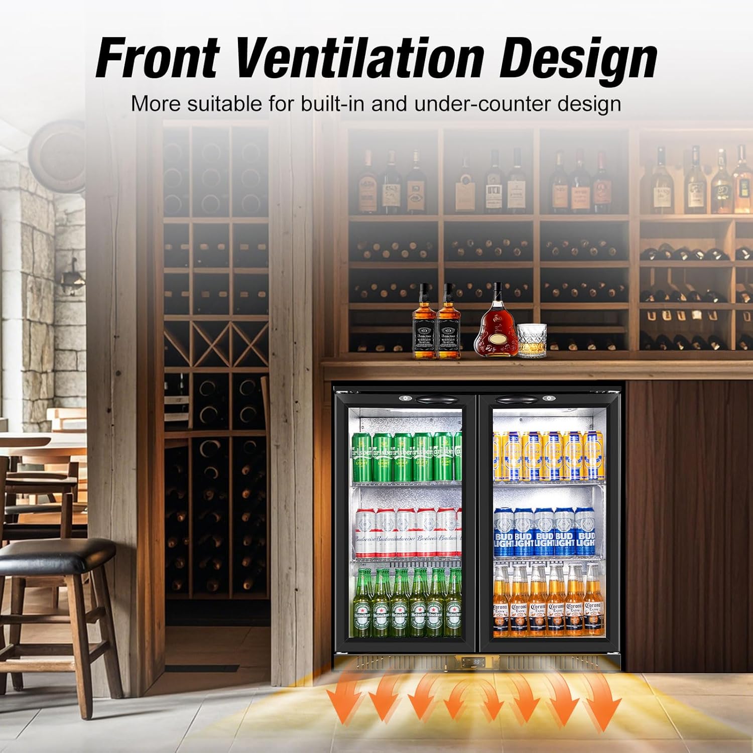 Beverage Refrigerator Under Counter, Back Bar Cooler with 2 Glass Door, Commercial Display Fridge 35.42 Inch Wide 7.4 Cu.Ft, Drink Fridge for Beer Soda Wine, Beverage Cooler for Kitchen Shop Bar