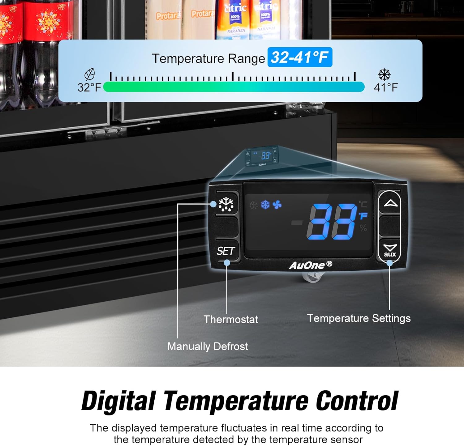- SELF-RETURNING DOOR & CONTROL PANEL: Designed with ease of use in mind, the commercial display refrigerator features a self-returning door and a straightforward control panel for hassle-free operation. The LED light switches provide excellent visibility, even in low-light settings, while the top-mounted light box enhances product visibility and helps attract more customers to your beverage selection.