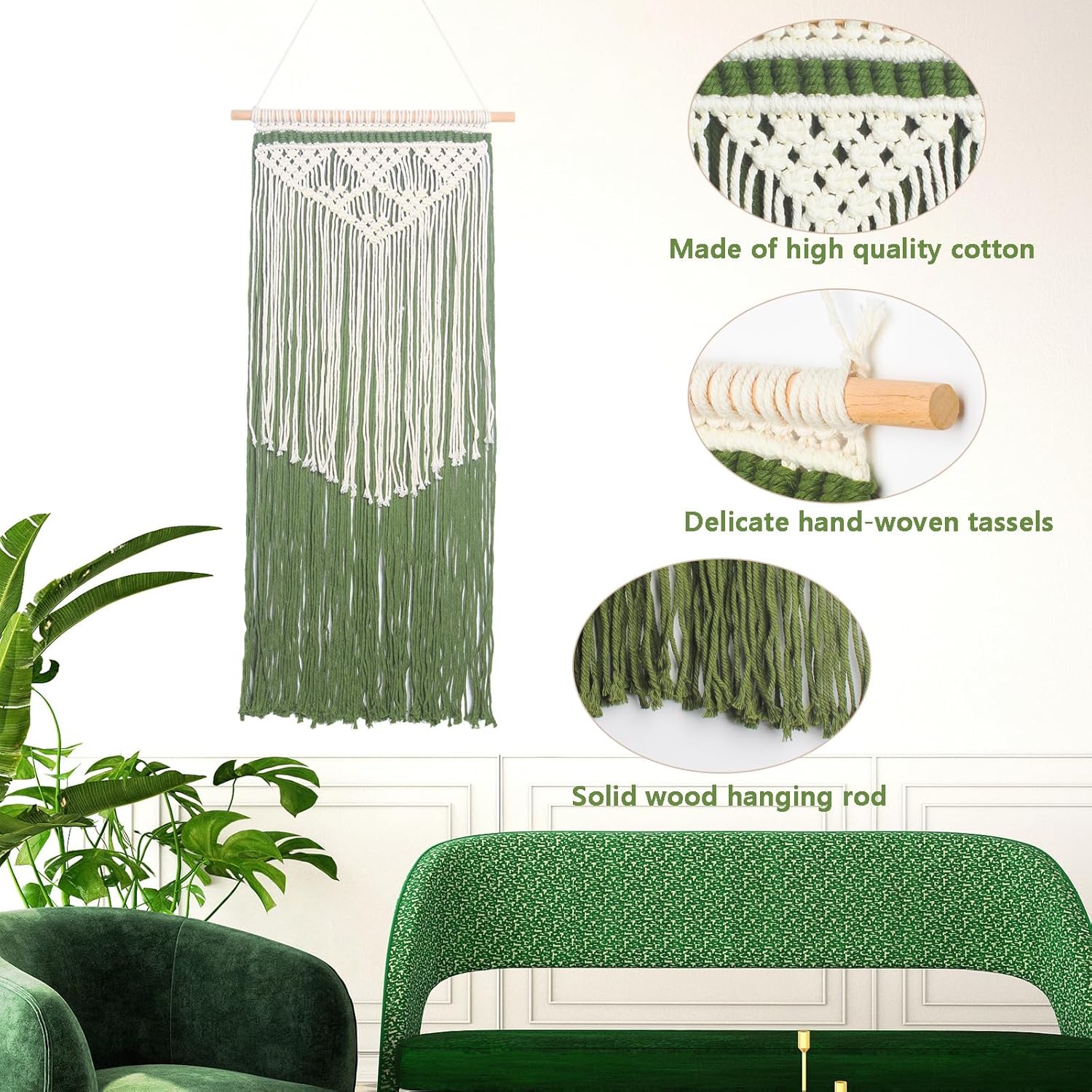 - Easy To Hang: Our macrame decor comes with a wooden rod and pre-attached tassels,all you need is a hook making it easy to hang on any wall.