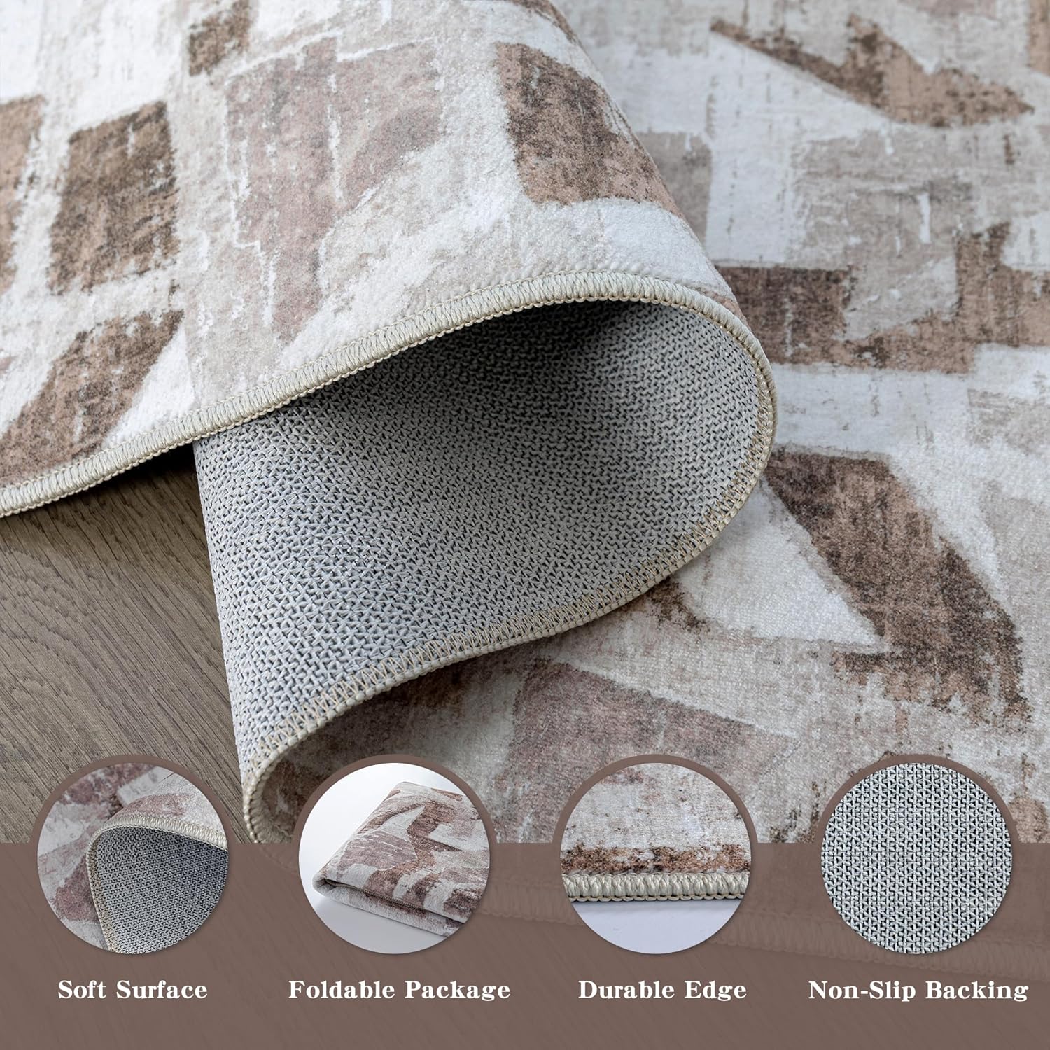- Non-Slip Backing: Designed with textured grip technology, this area rug stays securely anchored on hardwood, tile, or laminate floors. Perfect for homes with kids, pets, or elderly family members, it resists shifting during daily activities or furniture placement.