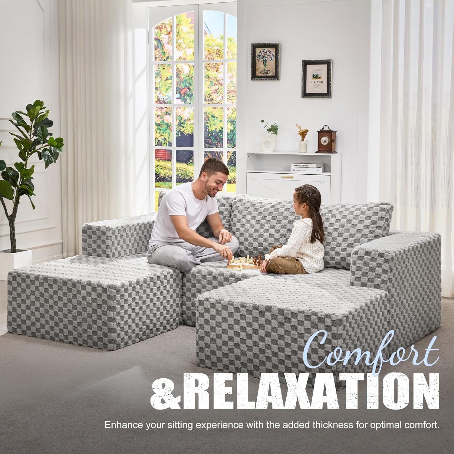• Luxurious Comfort with Memory Foam: Experience unparalleled comfort with our Hobestluk modular sectional sofa, featuring high-resilience memory foam filling. This premium material provides a cloud-like seating sensation, conforming to your body for ultimate support and cushioning. Whether you're lounging, watching TV, or taking a nap, this deep seat sofa offers supreme ease and relaxation.