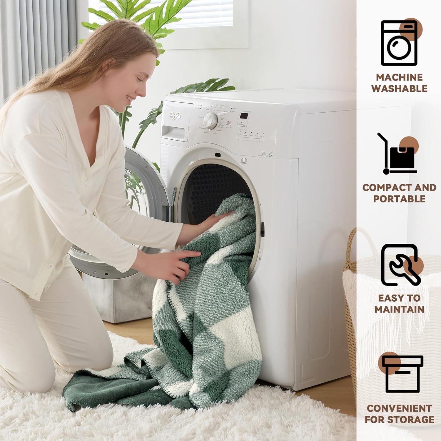 LURKA Checkered Sherpa Fleece Twin-Size Bed Blanket - Extra Thick and Warm Winter Soft Fuzzy Plush Blanket for Couches, Beds & Pets, Sage, 60x80 Inches