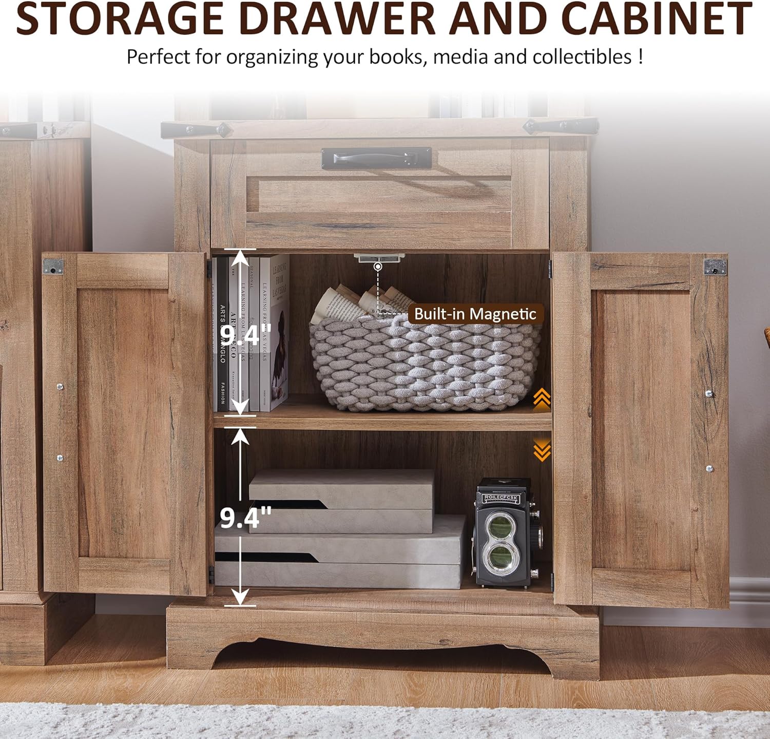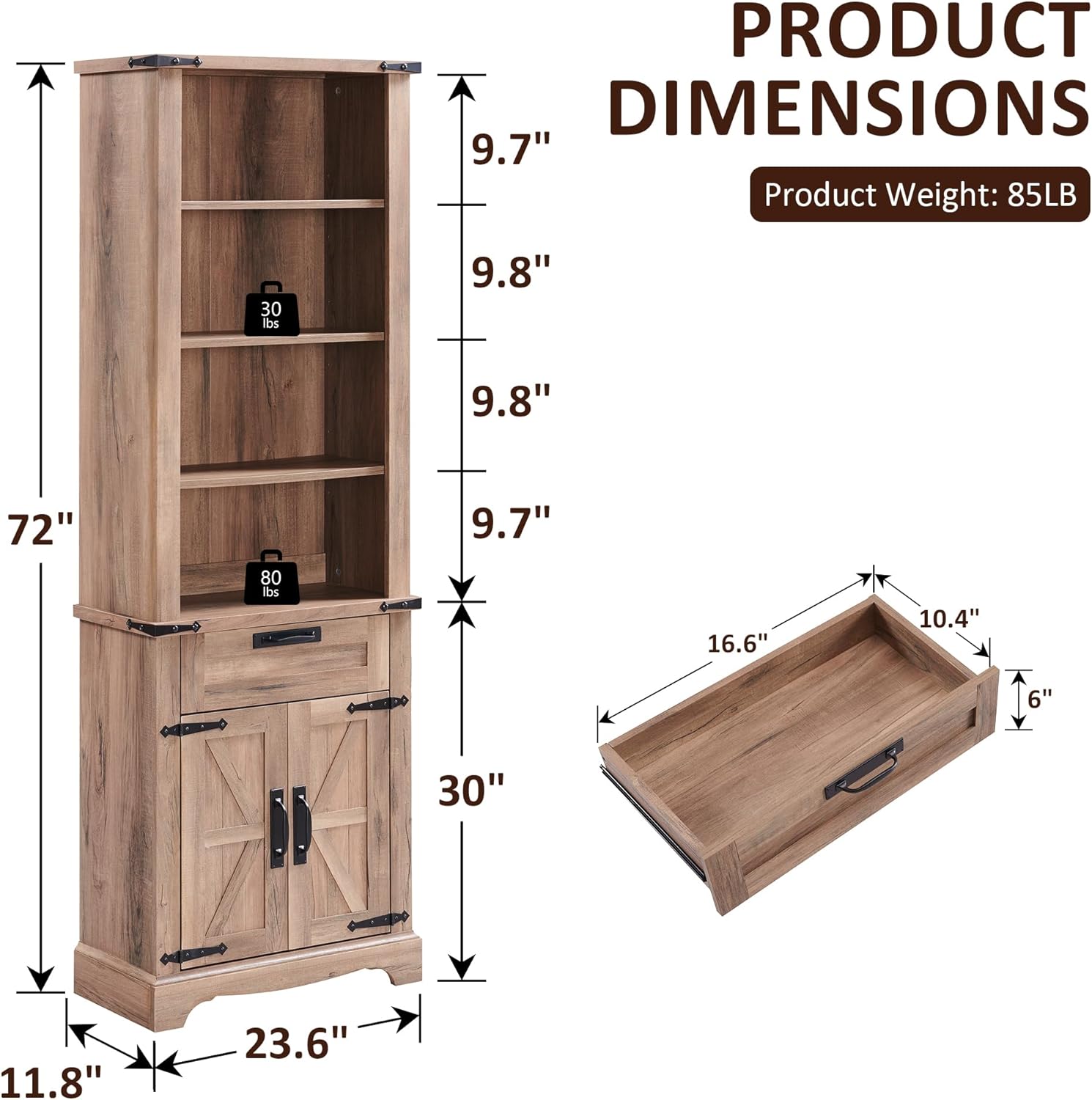 - Large Storage Space: This bookcase with drawer feature with 5 spacious adjustable shelves , 1 drawers and a colsed cabinet with barn door design, providing ample storage for all your books and decor items. Dimensions: 71.4"H x 23.6"W x 11.8"D. Whether in your living room, bedroom, or home office, this white bookshelf with a versatile storage cabinet is the perfect addition to your space