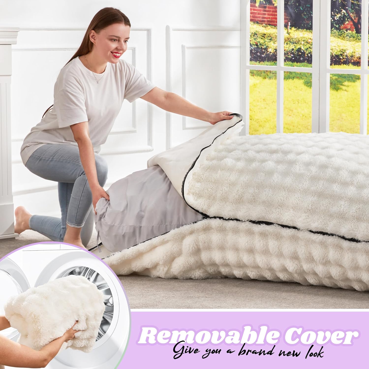 - Removeable Cover: The bubble cover of our bean bag chair for adults is durable and easy to clean, which is great for a household with pets. Covers can come off so you can just put it into the washing machine to keep fresh. It can withstand regular use without showing significant wear and tear. Additionally, the convenience of a removable and washable cover adds to its appeal, making bean bag couch an excellent choice for combining style, comfort, and practicality in any living space.