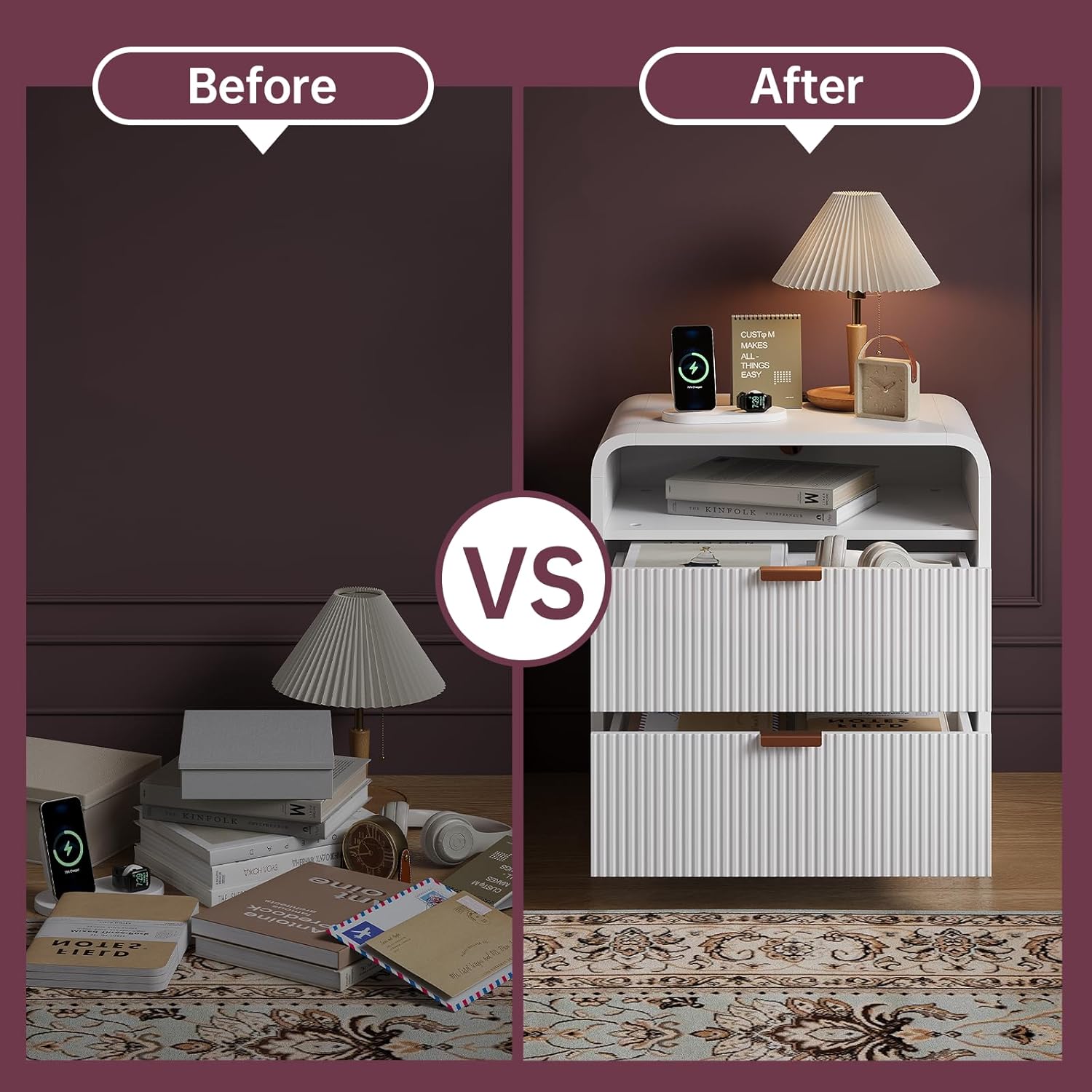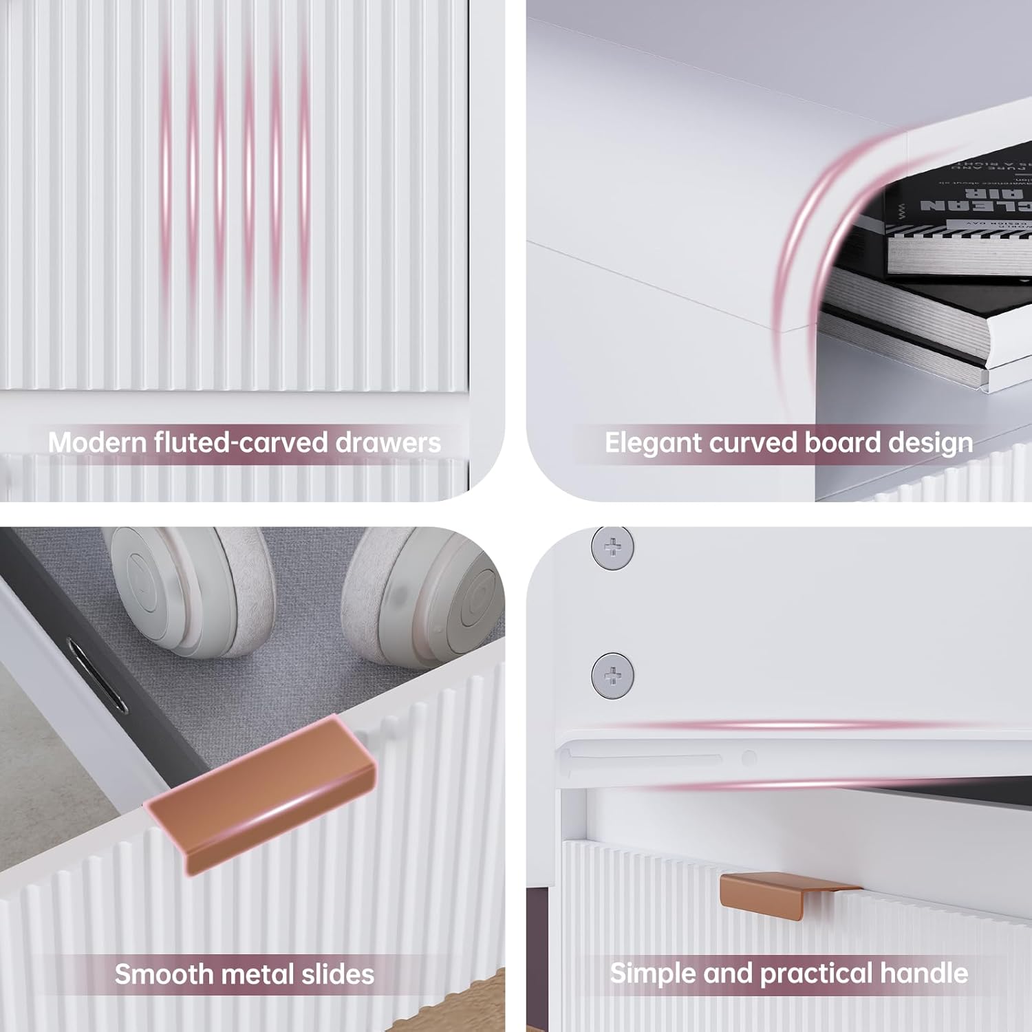 - ăElegance Meets Chică Elevate your space with this nightstand, blending artful design and modern durability. Sculpted fluted details create captivating texture and depth, turning functional storage into a statement piece for any bedroom or living area.