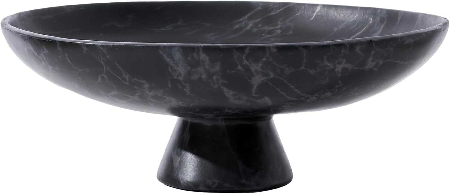 - 【Elegant Black Marble Decor Bowl】This black resin decorative bowl features a glossy marble-effect surface with an elegant pedestal. It’s a perfect addition to black home decor, ideal as a large bowl for fruit, a key holder, or a striking coffee table centerpiece.
