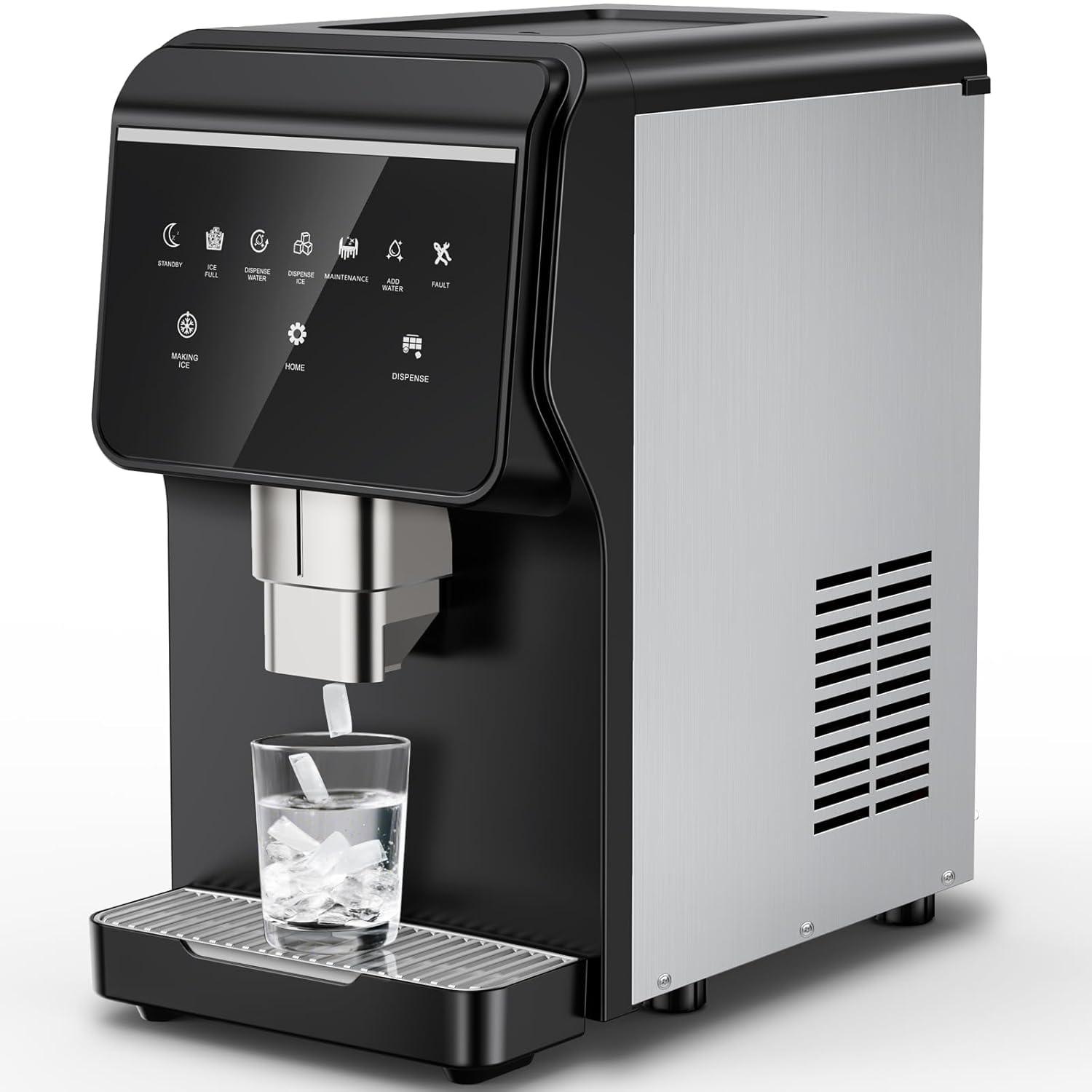 - [3-IN-1 SMART DISPENSER & DUAL WATER INLET] Dispense ice, water, or both instantly! Supports direct tap hookup or bottled water via dual inlets. The purification filter ensures clean, great-tasting ice every time.