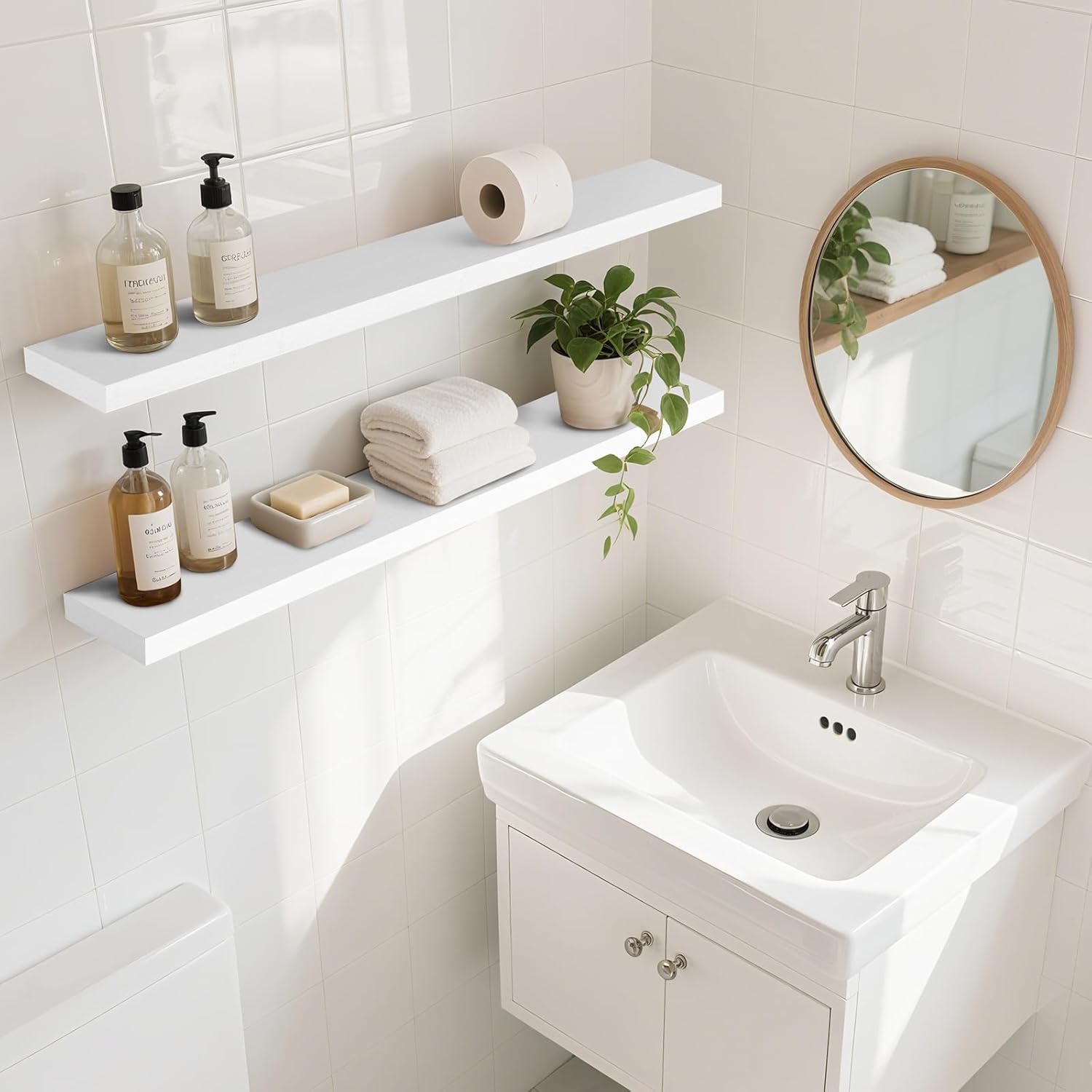 - Elegant Floating Design: These floating wall shelves are perfect for showcasing your home décor while optimizing space. Ideal as decorative shelves for living rooms, bedrooms, or kitchens