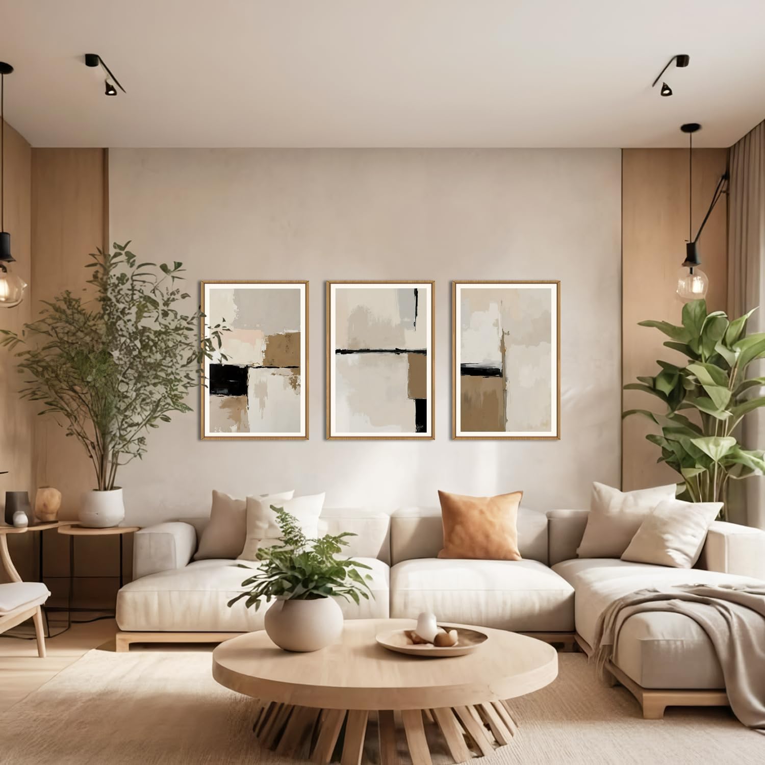HPINUB Large Modern Abstract Framed Canvas Wall Art Set,Geometric Line Black White and Beige Textured Wall decor Neutral Gray Minimalist Art Print for Living Room,Bedroom,Dining Room,Office -16"x24"x3