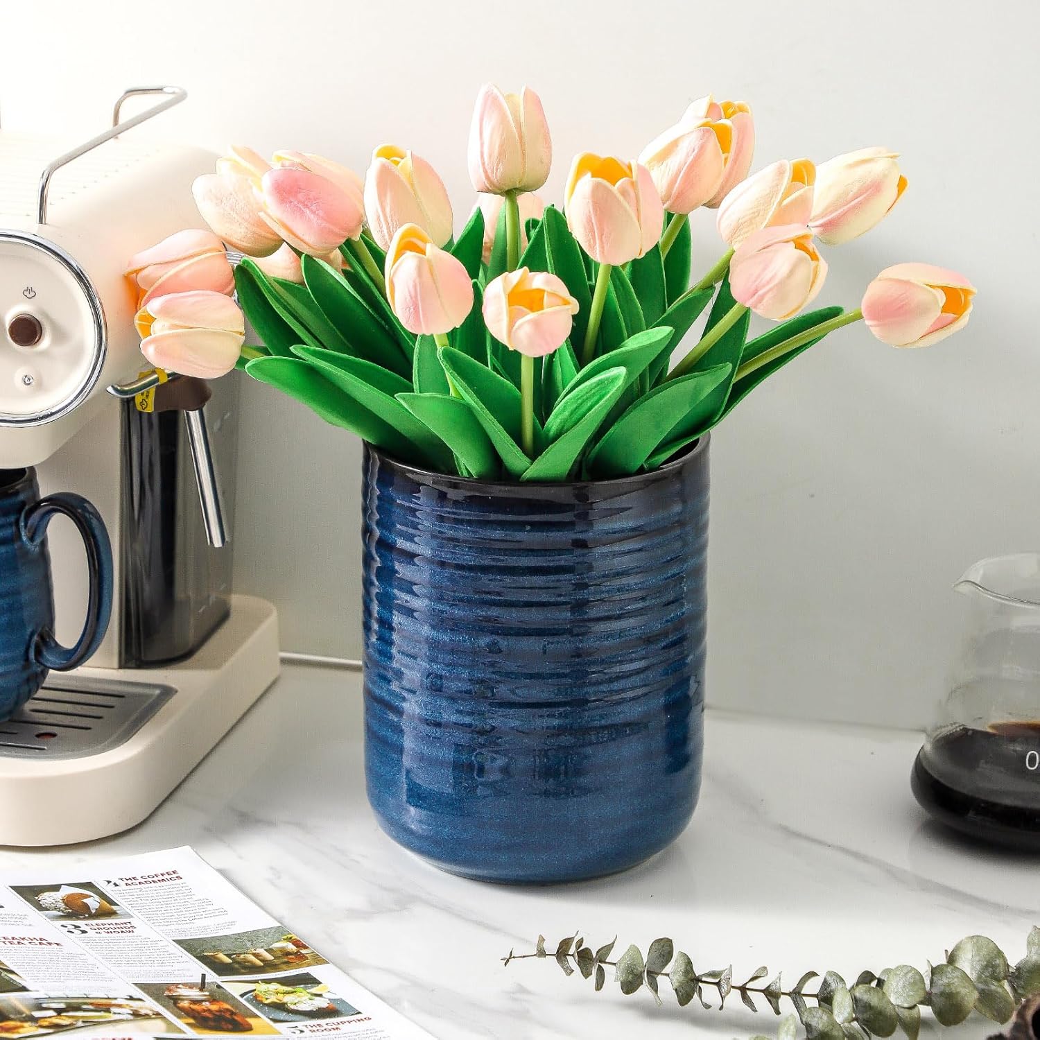 - Rustic And Farmhouse Decor: Hasense coffee canister designs with blue and white horizontal stripe which can catch your guest eyes and add a splash color to your home kitchen. This container have a larger volume, save space, and look good on countertop, shelves, or storage