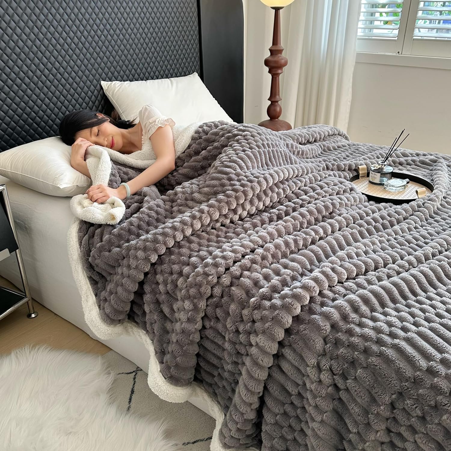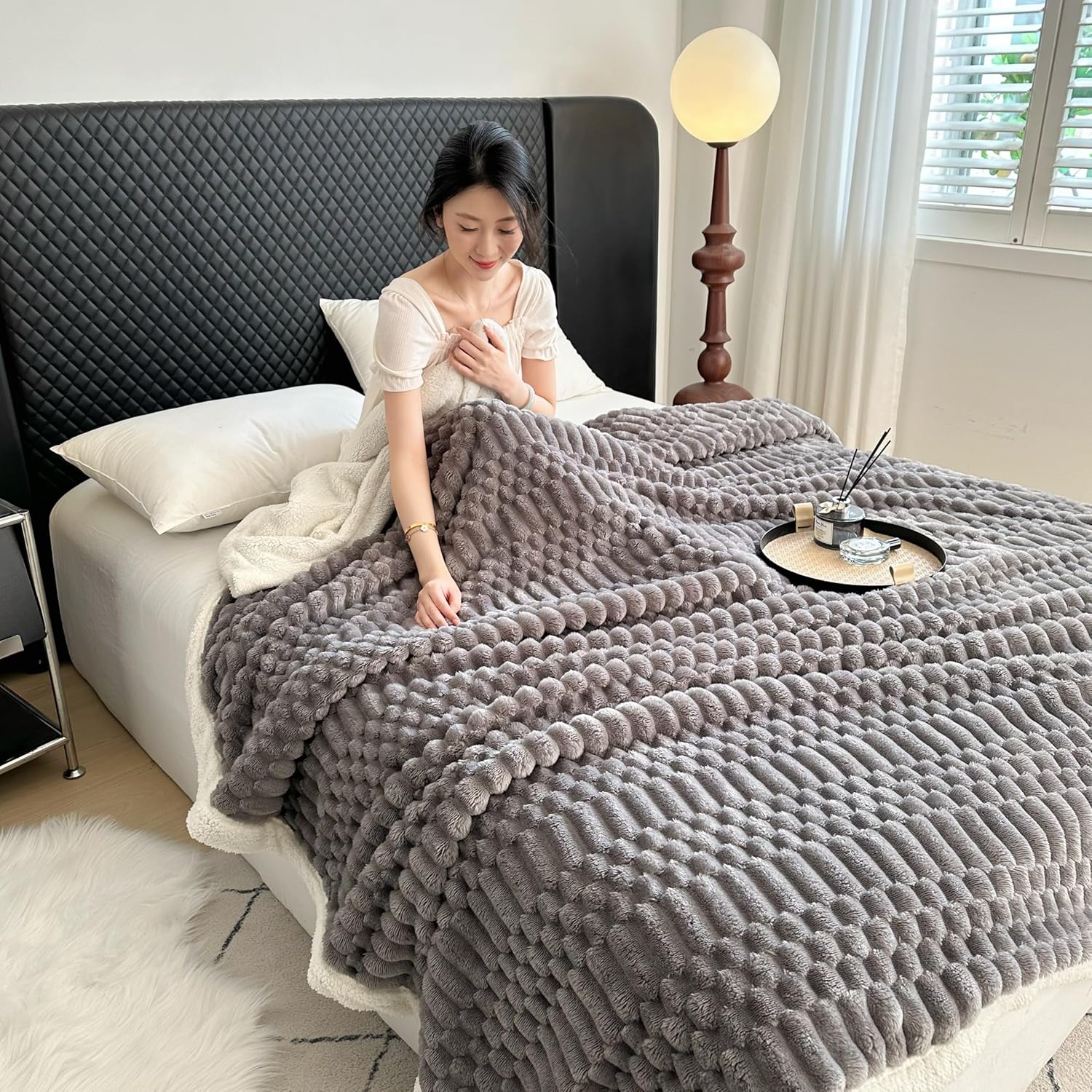 - Unique Design:coral fleece Jacquard face and sherpa fleece reverse with stripe design offer you a softer touch. Snuggling on your couch or bed with our blankets to enjoy happy hours. Different colors meet your needs.
