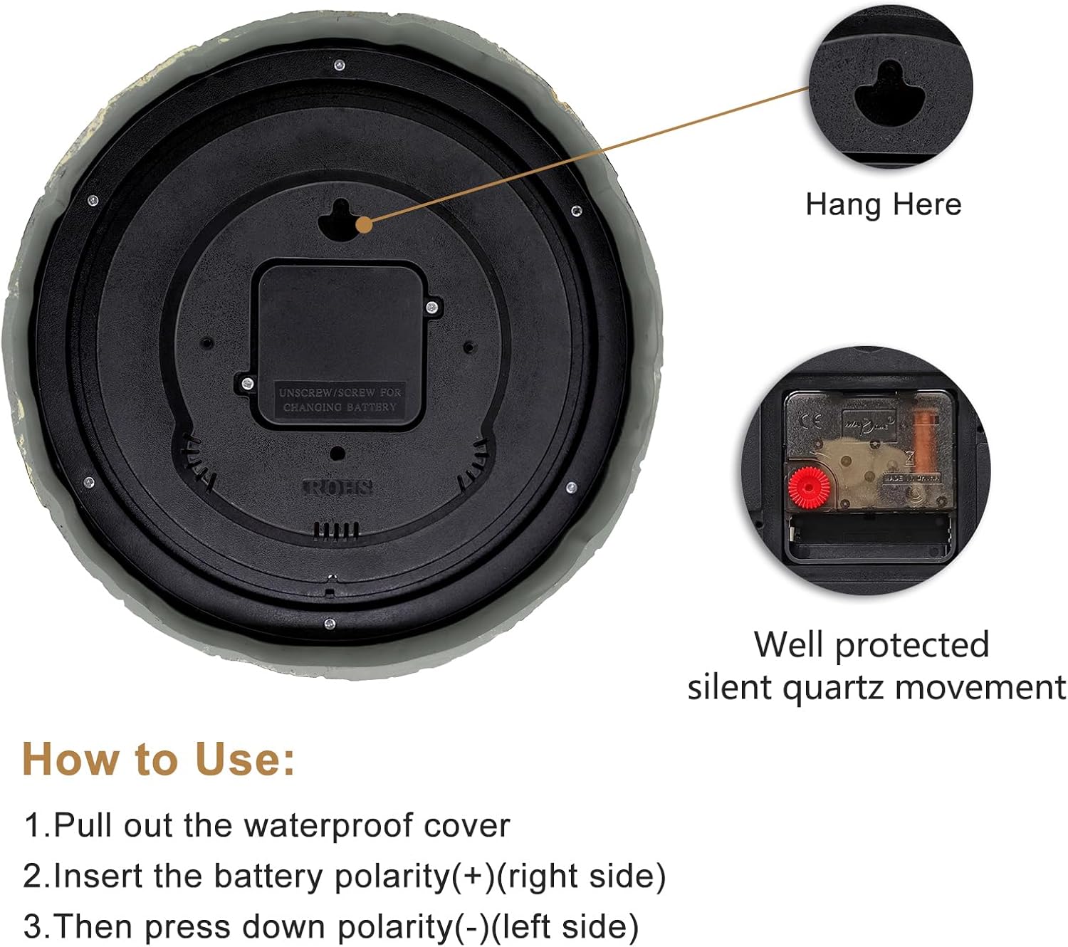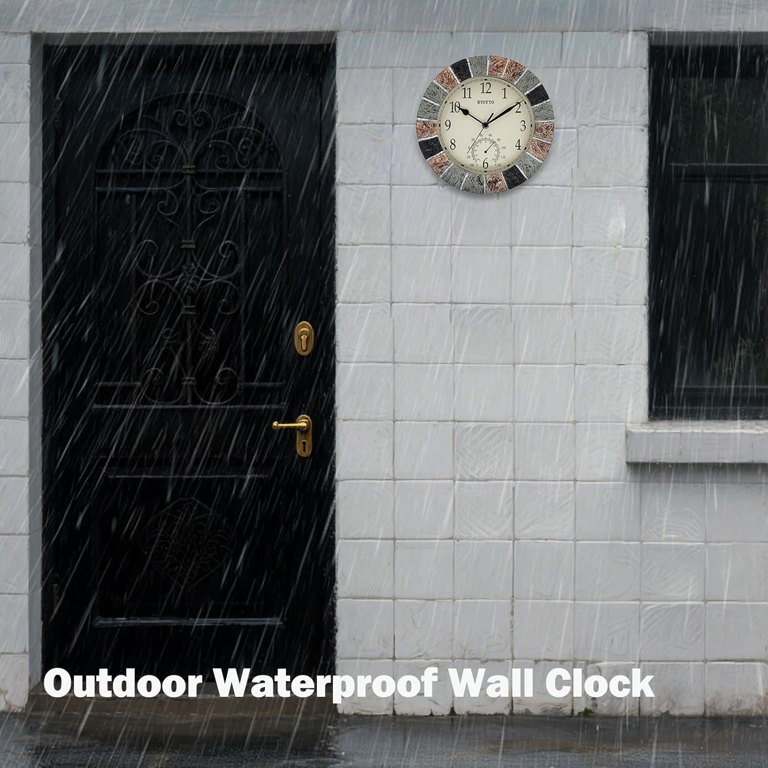 - Indoor/Outdoor Versatility with Weather Resistance: Weatherproof & waterproof design withstands humidity, rain, and temperature fluctuations. This weather-resistant wall clock features a waterproof rear cover and rubber seal, which is good to protect the quartz movement from rain. making it ideal for pools, patios, gardens, garages, farmhouse, bathrooms, kitchens, and more. Rain or shine, it delivers reliable performance.
