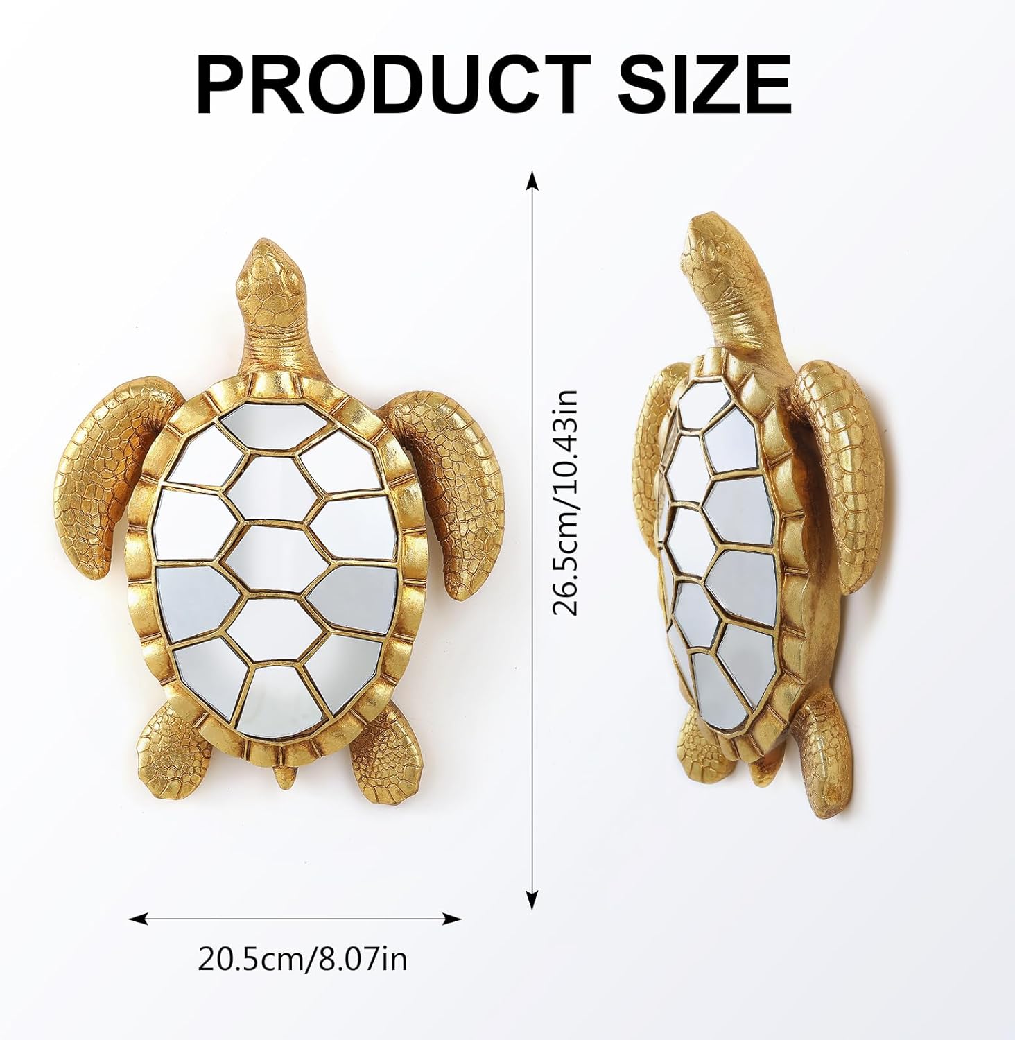 Vintage Wall Sculpture Animals Turtle Mirrors - Gold Resin Glass Wall Decor, Perfect for Victorian and European Themed Homes