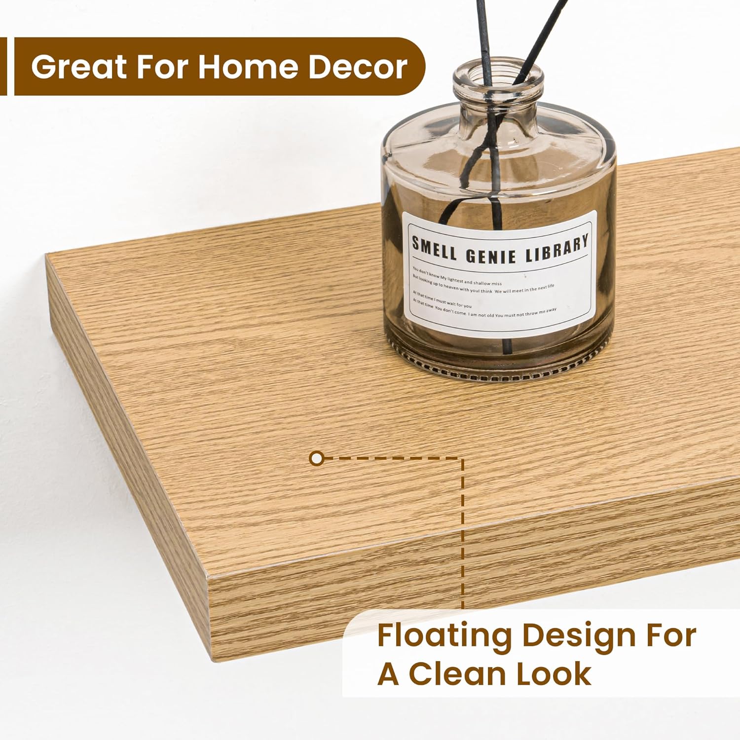 Fun Memories 40" Rustic Wood Floating Shelves with Invisible Brackets for Storage & Decor, Deep Wall Mounted Shelves for Bathroom, Kitchen, Living Room (Oak, Set of 2)