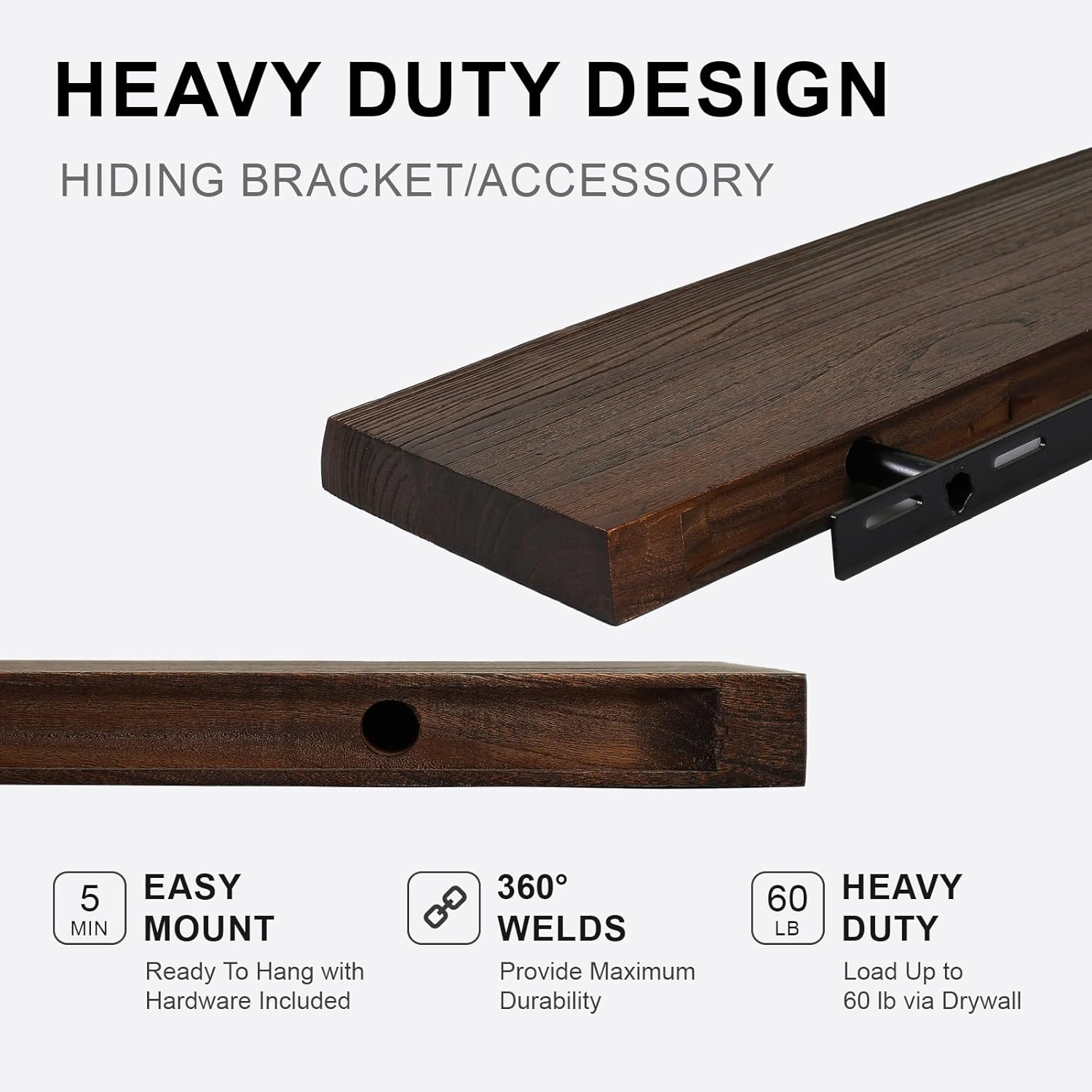 Floating Shelves Set of 2, Aged Elm Wood Picture Ledge Shelf, Floating Shelves for Wall for Bedroom Kitchen Bathroom Living Room (Walnut, 24 inch)