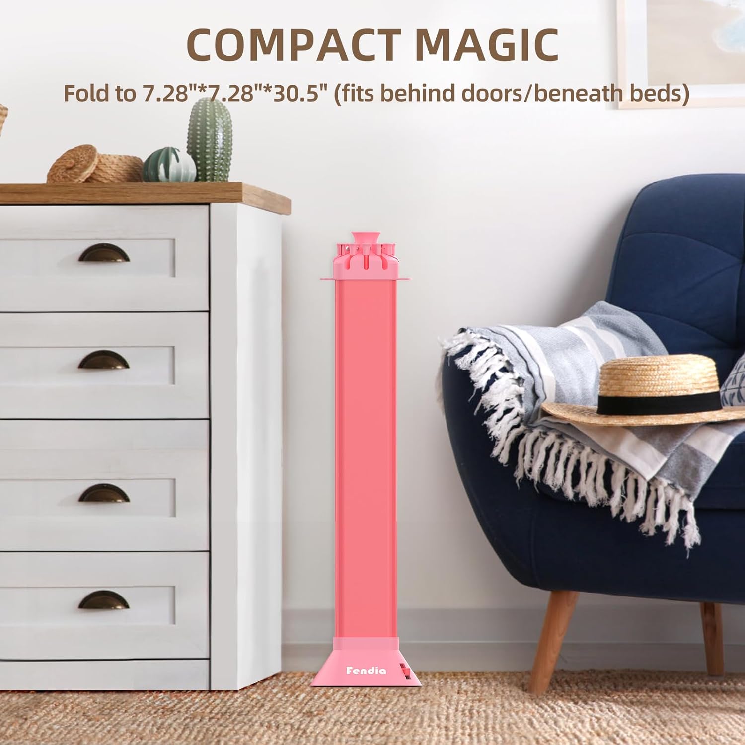 - 【Wheeled Convenience & Chic Aesthetics】 Glide the Fendia drying rack with wheels anywhere—its smooth-rolling design saves your back! The 4-leg drying rack ensures stability even with heavy loads, while the chic pink finish elevates laundry rooms or balconies. Compact enough for tiny homes yet sturdy enough for king-sized comforters, this heavy duty foldable drying rack is a must-have for busy households, urbanites, and travelers.