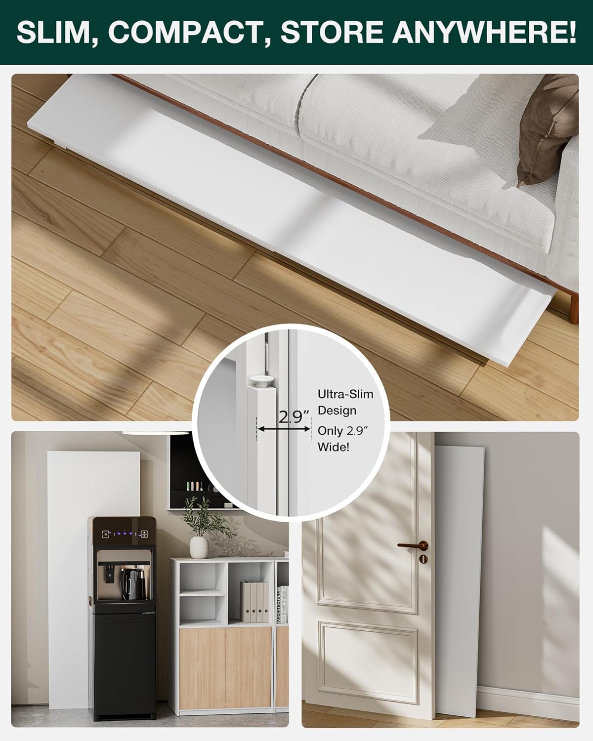 - 👍𝗙𝗢𝗟𝗗𝗦 𝗙𝗟𝗔𝗧 𝗪𝗜𝗧𝗛 𝗦𝗣𝗔𝗖𝗘-𝗦𝗔𝗩𝗜𝗡𝗚 𝗦𝗧𝗢𝗥𝗔𝗚𝗘 — With a folded thickness of only 2.9 inches, this desk fits easily under beds or behind doors. Lightweight and compact, it’s perfect for small-space living or temporary setups like trade shows and pop-up workstations