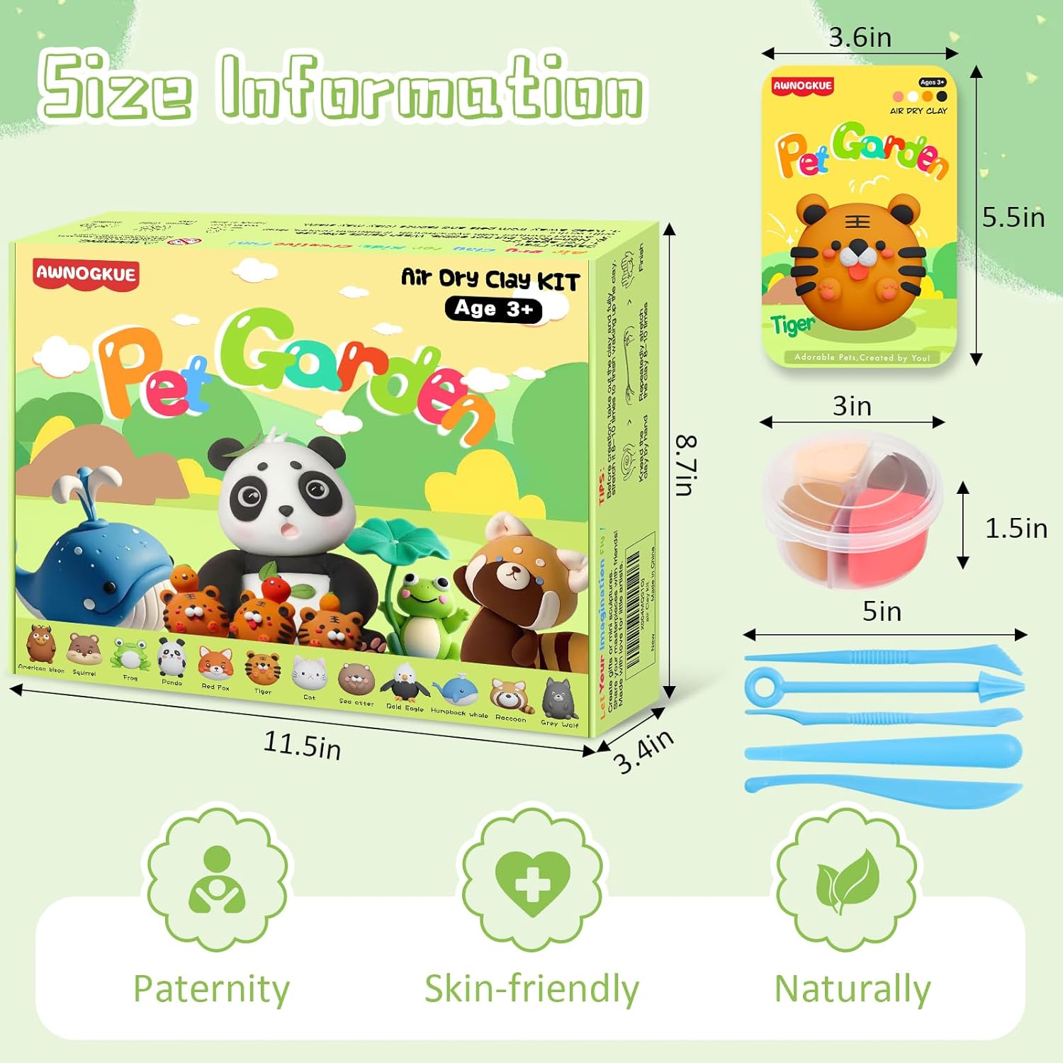 - 【modeling clay for kids】:This air dry clay kit includes 12 individually wrapped boxes of 4-color clay and 5 sculpting tools. Each box of clay has a simple 6-step tutorial on the back to squish into a cute animal pet (bald eagle, American bison, red fox, grey wolf, panda ). This magic model clay allows kids to create a colorful pet garden, having endless fun!