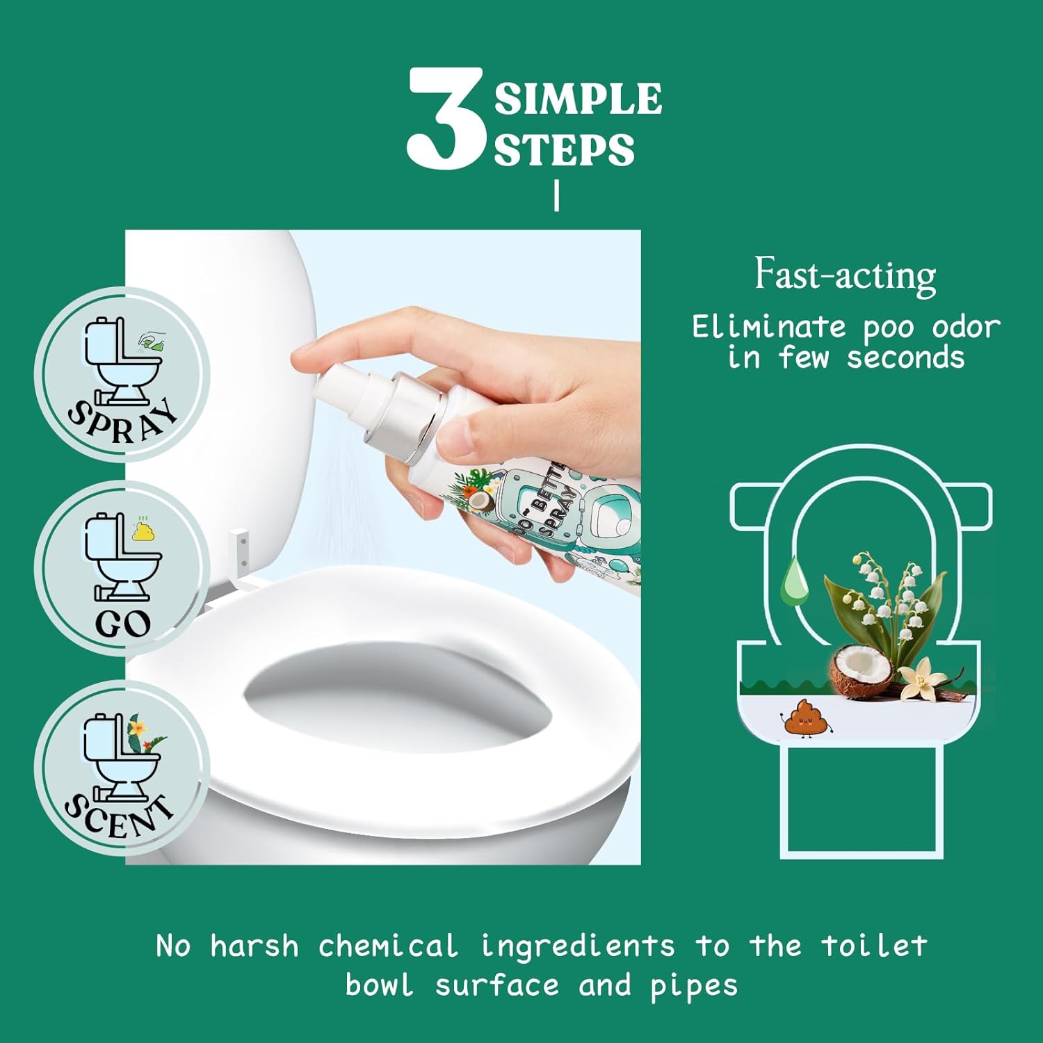 - HOW DOES IT WORKS: Shake it well. Just spritz 2~4 sprays on the water's surface to lock down unpleasant odors below the water before it begins, then do your business with confidence