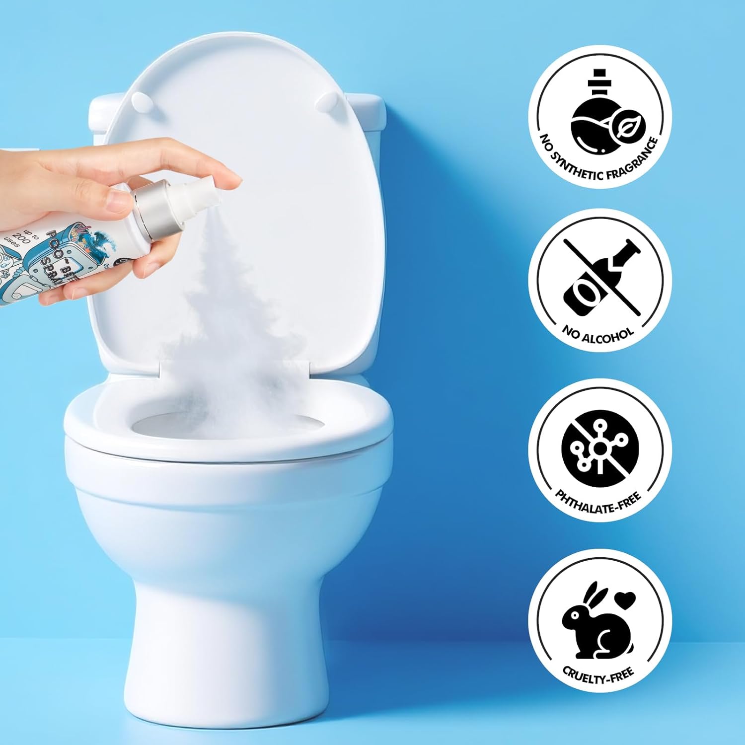 - HOW IT WORKS: Shake it well. Just spritz 2~4 sprays on the water's surface, to lock down unpleasant odor below the water, then do your business with confidence