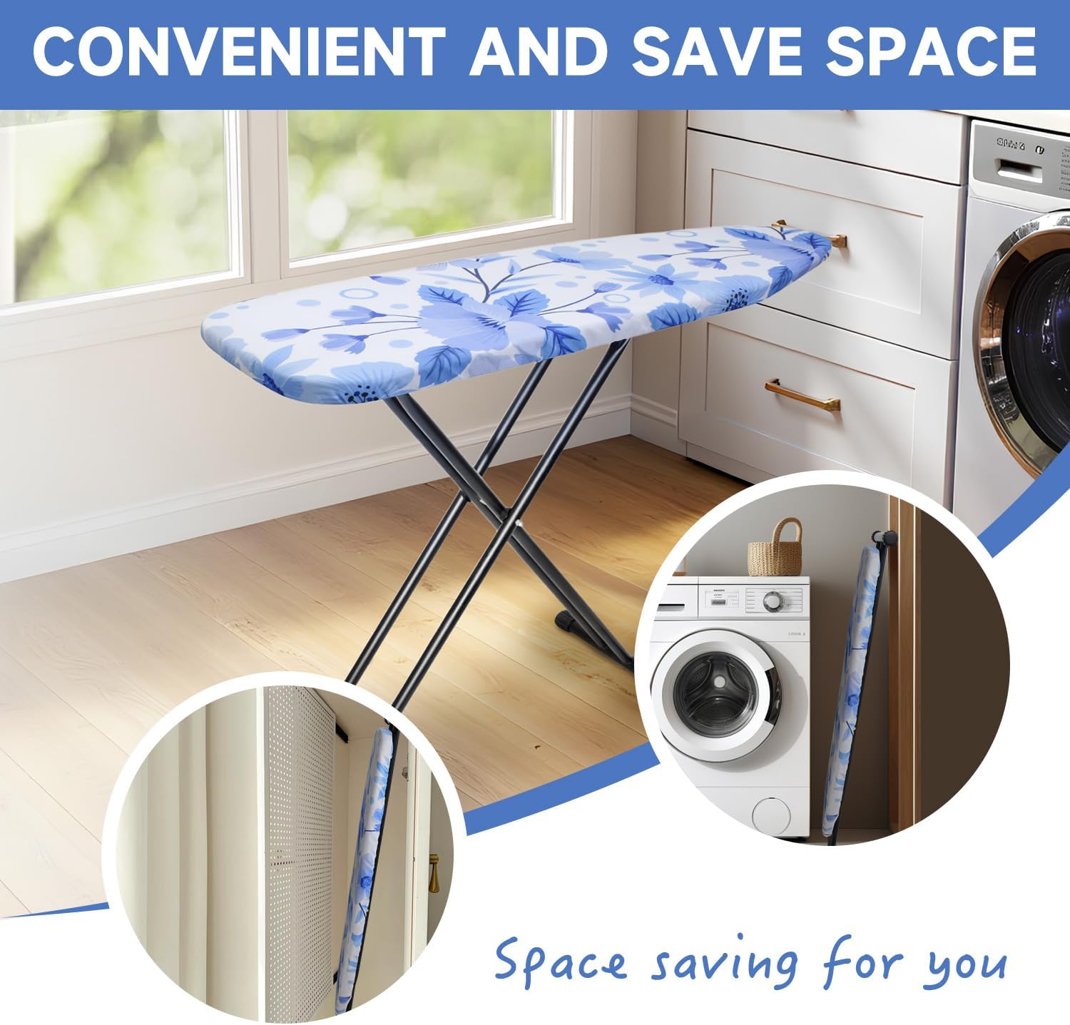 Ironing Board, Compact and Space Saver Ironing Board, Extra Wide Ironing Area with Extra Thick Heavy Duty Padded Cover, Stable Structure, Easy to Fold,Height Adjustable
