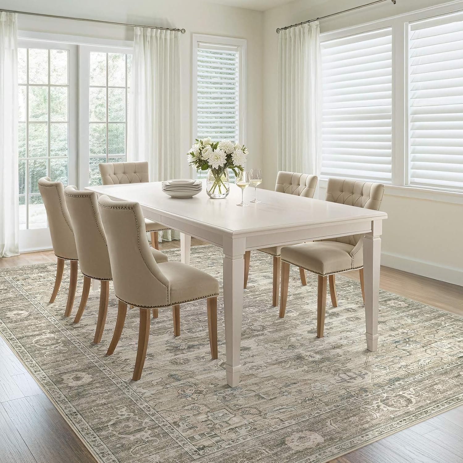 Washable Area Rugs for Living Room -9x12 Neutral Vintage Distressed Floral Farmhouse Boho Large Soft Floor Rug Indoor Non Slip Carpet for Living Room Bedroom Dining Room Office - Brown/Tan
