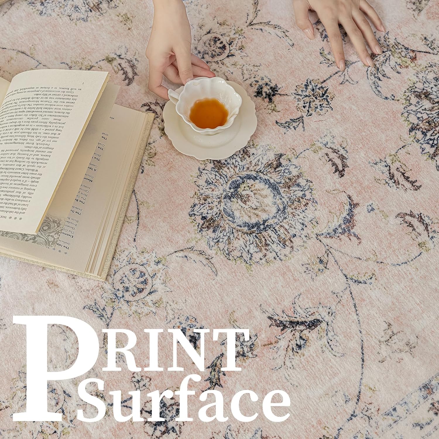 - Romantic Pink Style: This 4’x4’ area rug enchants with a soft vintage pink floral motif, effortlessly blending timeless elegance with a dreamy, romantic palette. The muted blush tones, gently kissed by subtle distressed details, lend an air of delicate femininity—ideal for shabby chic, French country, or modern farmhouse interiors