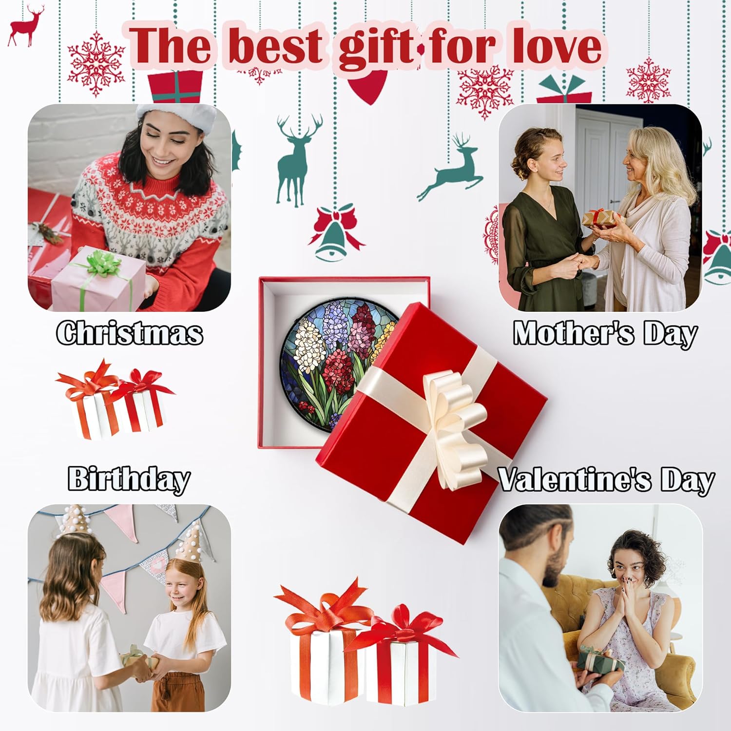 Stained Glass Window Hanging, Colorful Hyacinth Flowers Suncatcher for Doors Window Home Plant Sun Catchers Decoration Mother's Day Birthday Gifts for Women, Men, and Mom 6.3x6.3 in