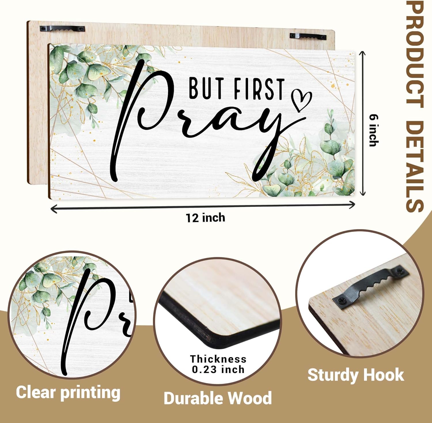 But First Pray Wooden Wall Sign - Inspirational Christian Home Decor with Rustic Farmhouse Style - Scripture Plaque for Bedroom, Office, or Church - Uplifting Gift for Believers. (057)