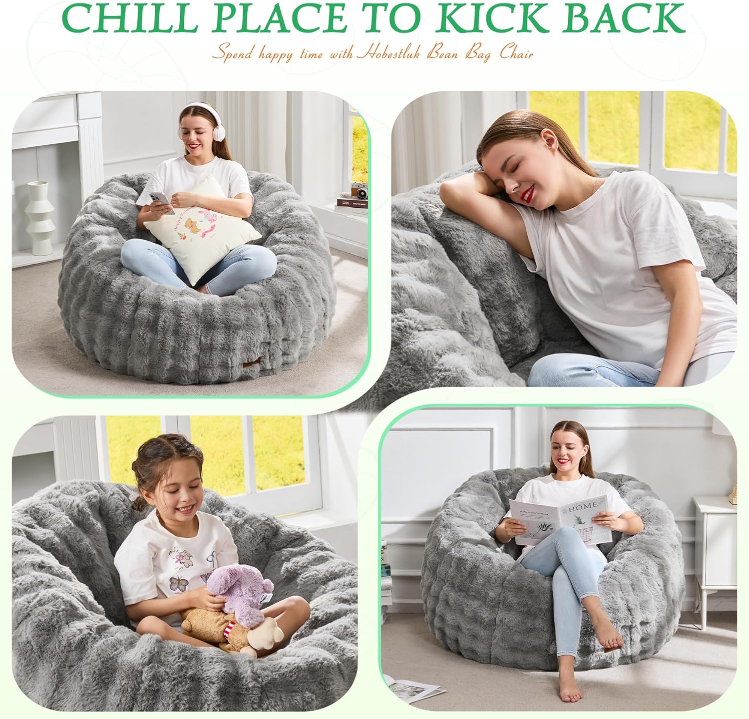 • Premium Material: Our bean bag chair is filled with high-density memory foam, providing ample support for your comfort. The cover is crafted from luxurious faux fur fabric that is incredibly soft, cozy, and skin-friendly, offering a warm and inviting feel.