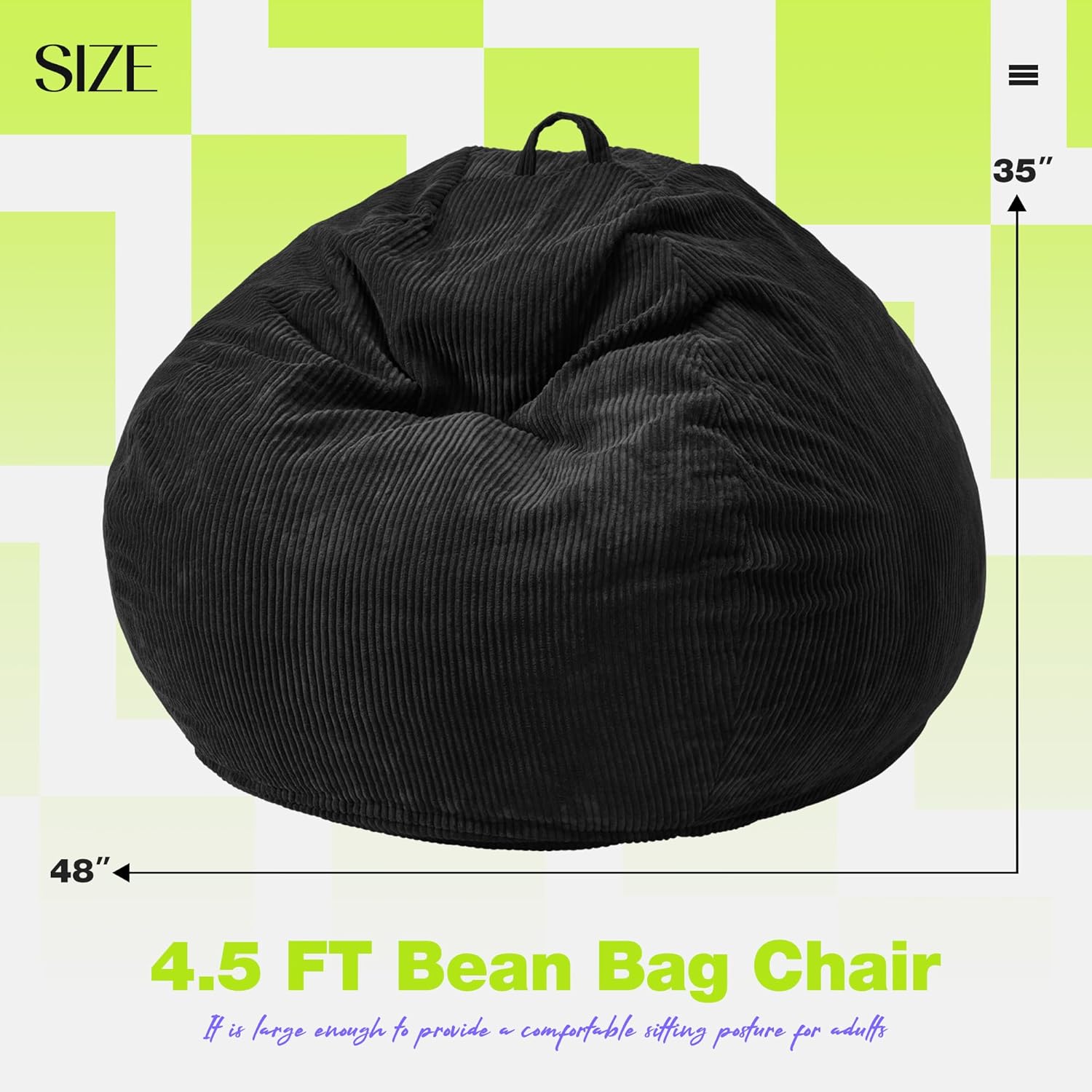 • Choose Your Comfort: Whether you're moving adult bean bag chairs from the living room to the bedroom or taking it outdoors, our oversized bean bag chair is lightweight and easy to carry with its built-in handle, making it the ideal portable seat.