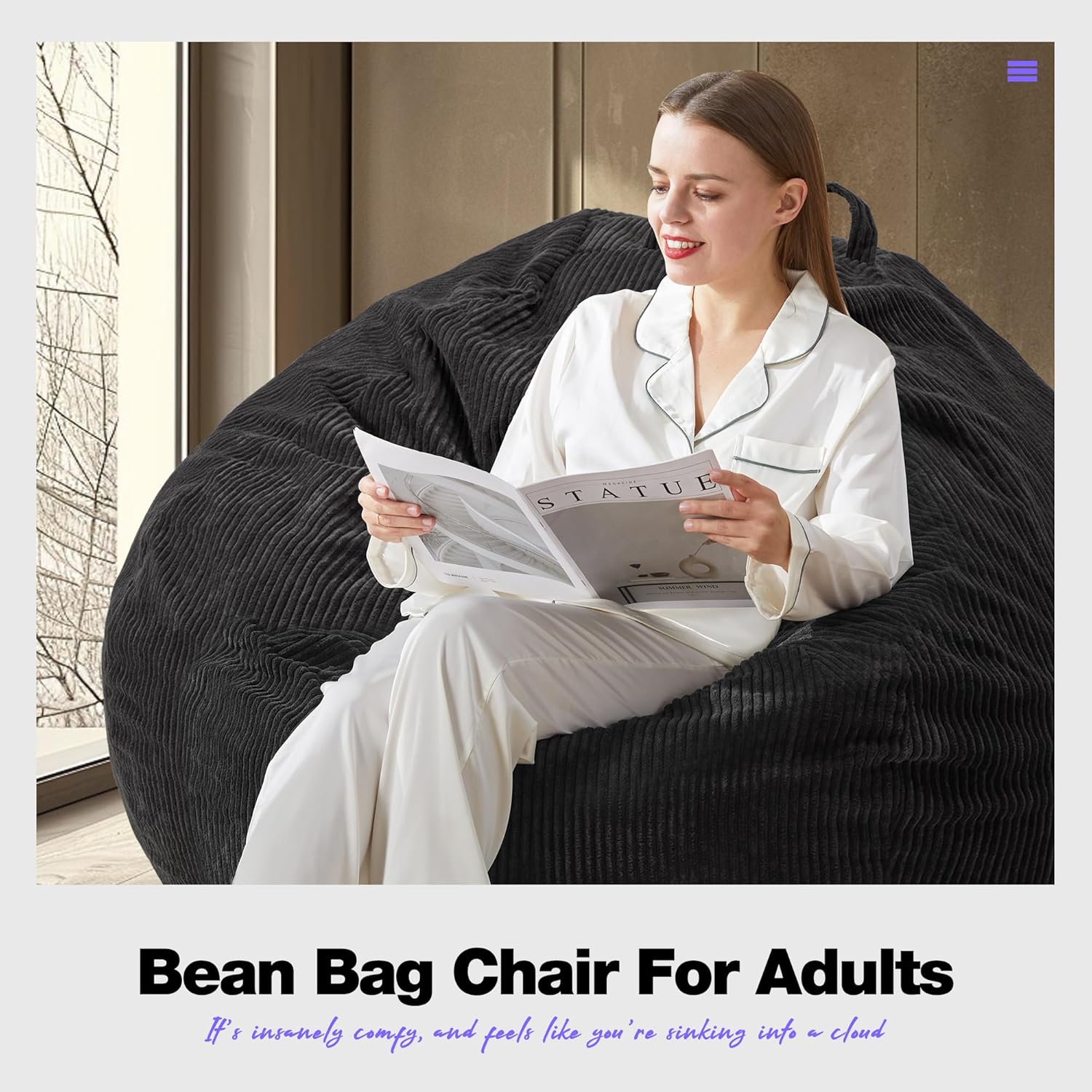 • Creative Design: Hobestluk large bean bag chair looks like a tear drop with a wide base that narrows towards the top. There are six colors for you to choose in this design. Plus, our bean bag is made of comfy textured corduroy fabric and high-density memoy foam, which feels like you're sinking into a cloud.