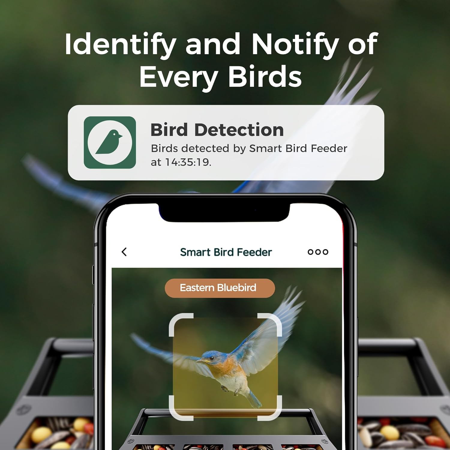 - Birds up Close:Capturing 2K videos and photos. AI identifies different species. Smart bird feeder with camera sends visit notifications to your phone. Collect and store fascinating bird videos and photos