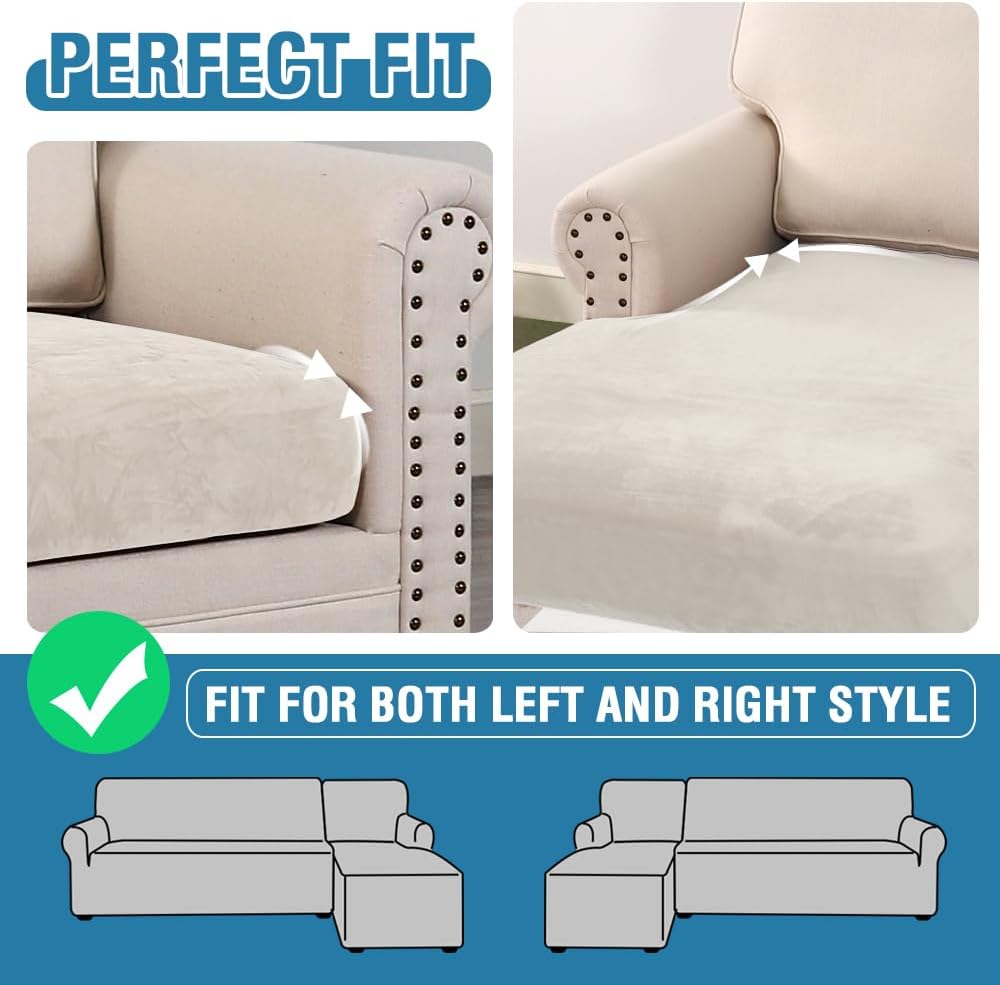 H.VERSAILTEX Velvet Stretch Sectional Couch Covers 3 Pieces Sofa Seat Cushion Covers L Shape Separate Couch Cover for Both Left/Right Sectional Couch (Large Sofa 2 Seater + 1 Chaise, Porcelain)