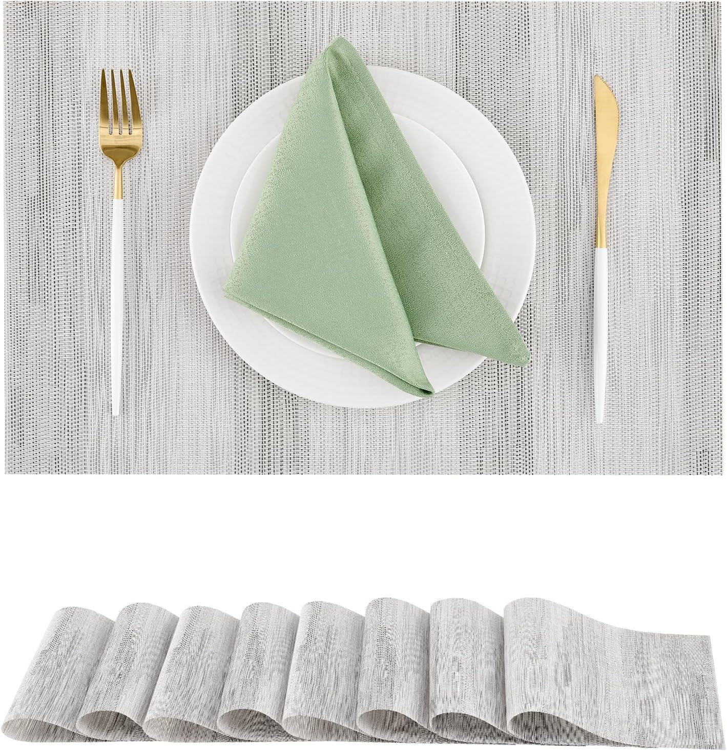 - Elegant and Practical Design: With a luxurious vinyl woven texture, precision cutting, and heat-trimmed edges, our double-sided placemats offer a sophisticated and practical solution. They provide a non-slip surface, resist fading, and are easy to clean, elevating your dining experience