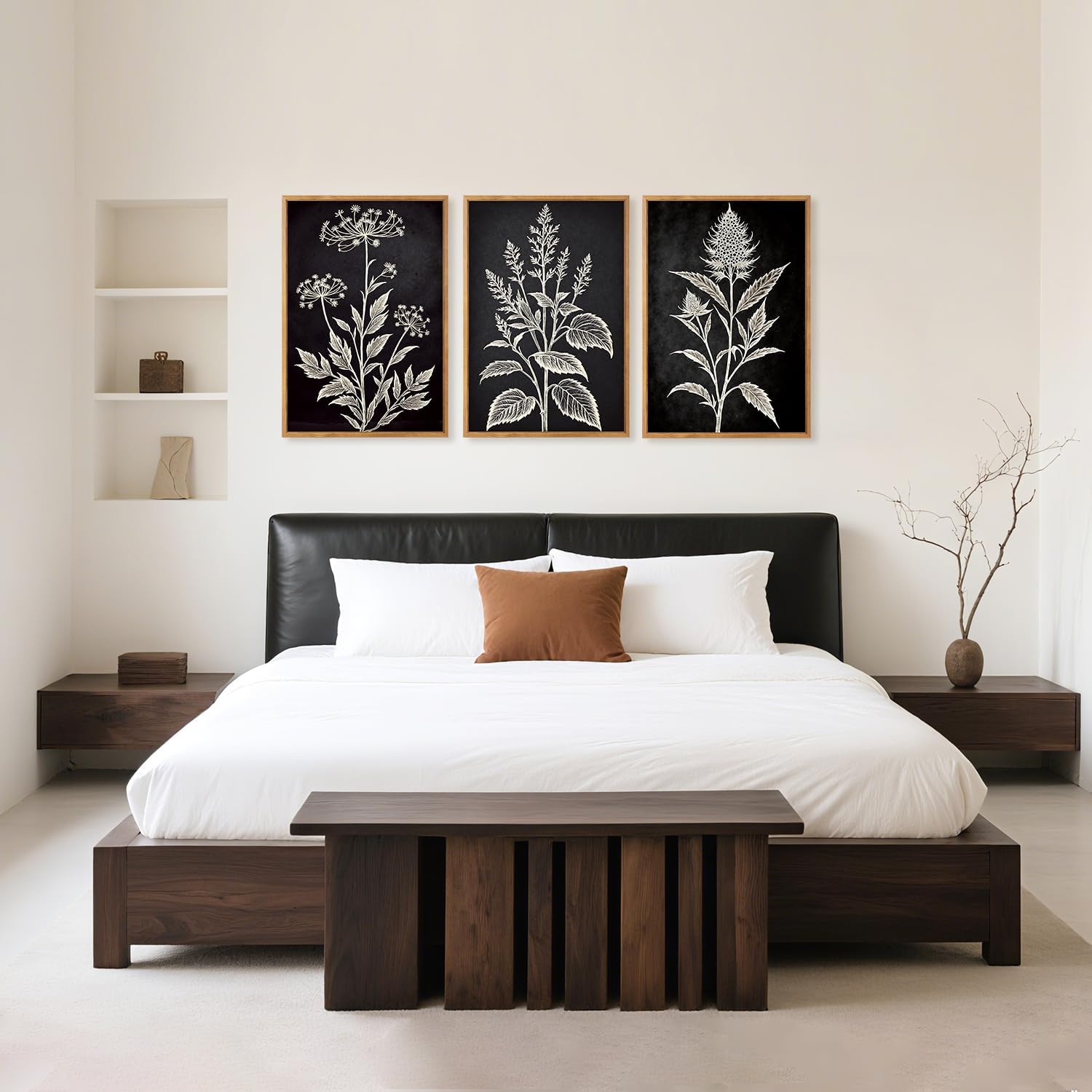 - 【Modern Neutral Wall Art】16*24 inches, set of 3. This set of large vintage botanical wall art depicts three forms of wildflowers and plants through watercolor technique. It adds a serene natural touch to your living space and fosters an ambience of peace and beauty. This simple and quiet feeling will help you get rid of fatigue.