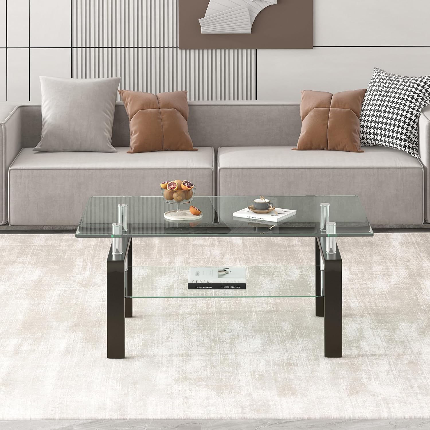 - Convenient Storage Space: The table is equipped 2 layer glass, offering additional storage space for organizing your living room essentials, books, or dรฉcor items.