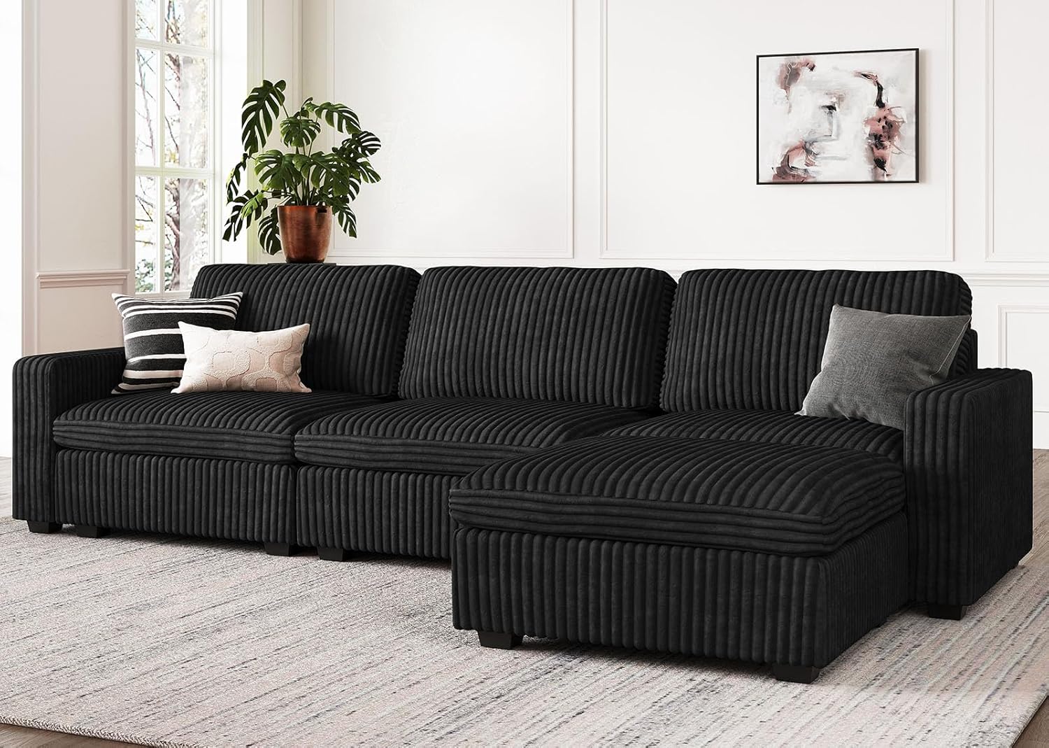 Belffin Modular Sectional Sofa with Storage Ottoman, Oversized Cloud Couch Sectional with Extra Deep Seat, Convertible L Shaped 4 Seater Sectional Couches for Living Room, Plush Corduroy Black