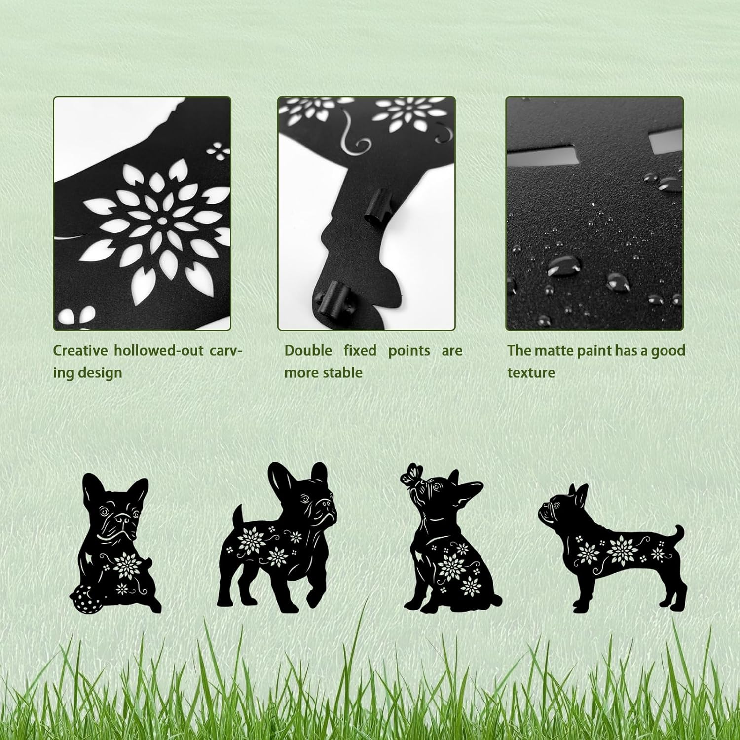 4 Pack Bulldog Metal Garden Decorative Stakes, Weather Proof Puppy Silhouette Statues for Yard, Patio,Outdoor Decor for Bulldog Lovers and Pet Owners