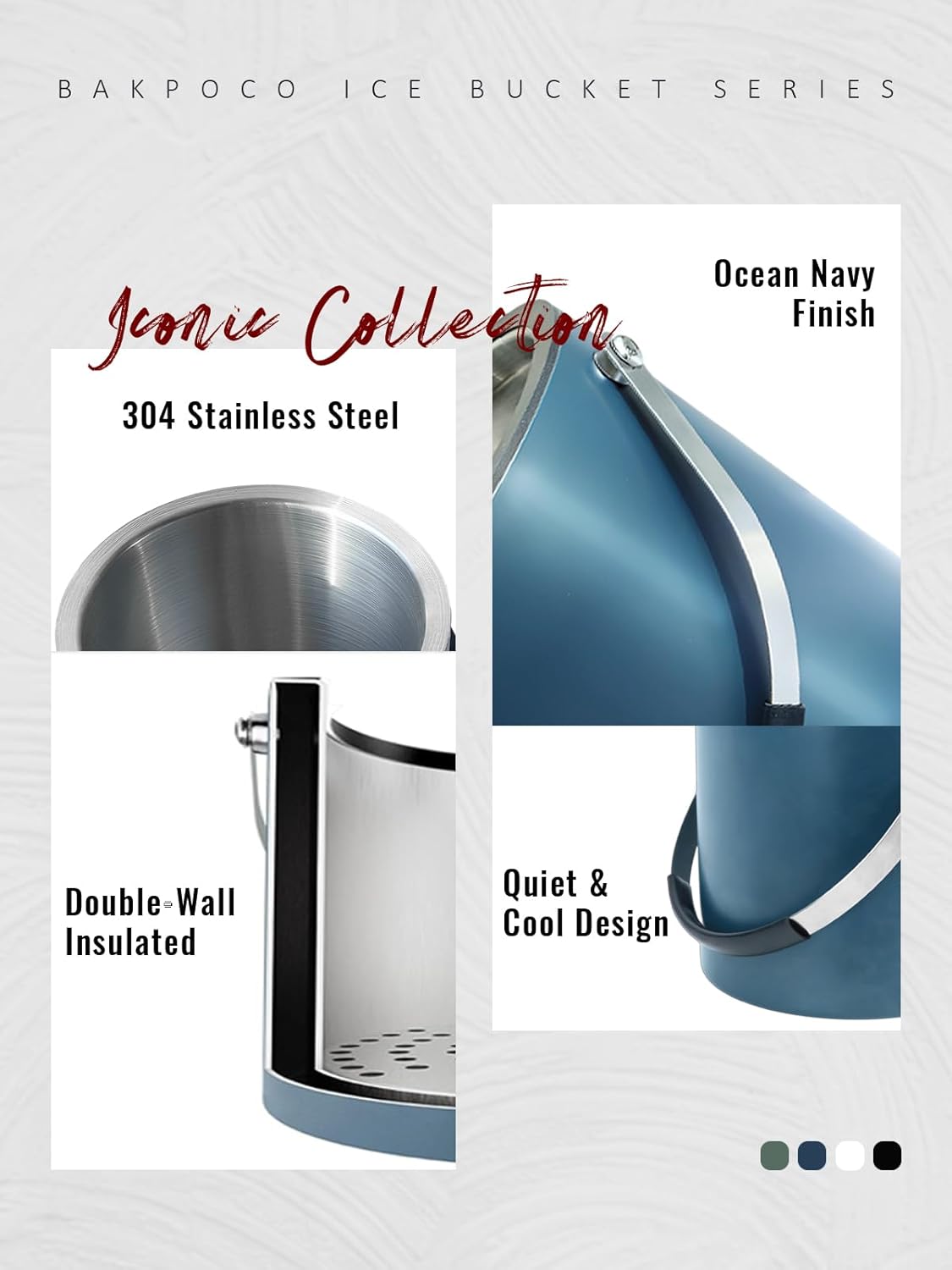 - CLASSIC NIGHT NAVY: This stunning matte navy and silver ice bucket radiates sophistication and glamour. Its sleek design makes it the perfect centerpiece for upscale gatherings, whether you're hosting a chic cocktail party or an intimate dinner. Imagine serving chilled drinks in style, enhancing your modern home decor with a touch of luxury