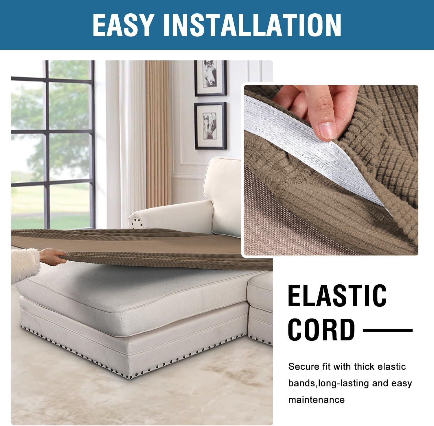H.VERSAILTEX Super Stretch Individual Chaise Cover Sectional Couch Covers for L Shaped Sofa Both Left/Right Featuring Thick Jacquard Textured Twill Fabric (1 Piece Chaise Cover Large, Macchiato)