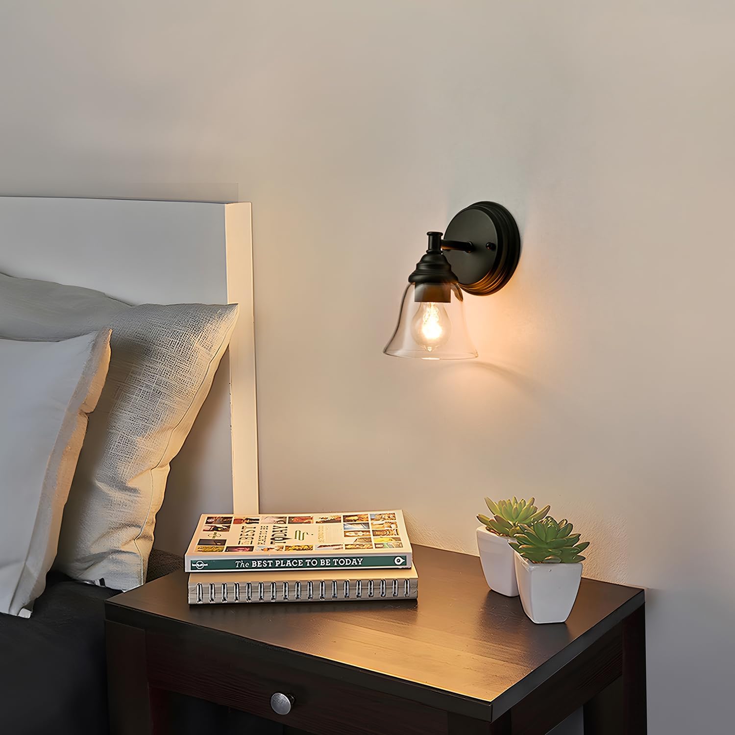 - Compatible with E26 Bulbs: This black clear glass wall sconce is compatible with all E26 base bulbs, including LED, incandescent, Edison, energy-saving, and halogen bulbs (up to 60W, bulbs not included).